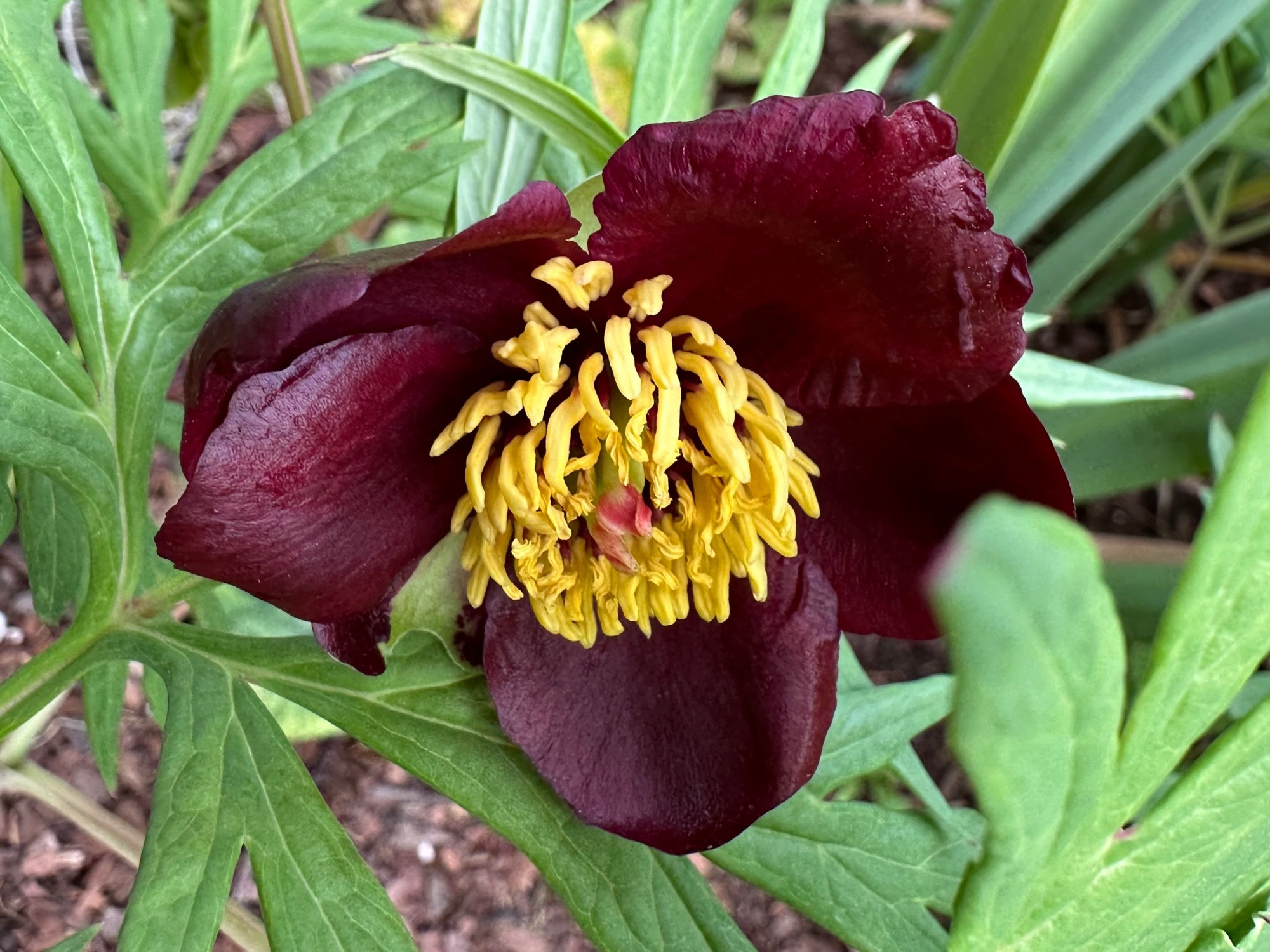 Die hat insgesamt sowohl von der Blüte als auch den Blättern was von Paeonia delavayii (oder P. potaninii) also einer Strauchform. Wenn staudig, hab ich sowas noch nicht gesehen in meiner Paeonien-Literatur.Iris-Freundin hat geschrieben: ↑11. Jun 2025, 22:55 Diese hat kleine nickende Blüten in einem dunklen rot. Kann es Paeonia californica sein?