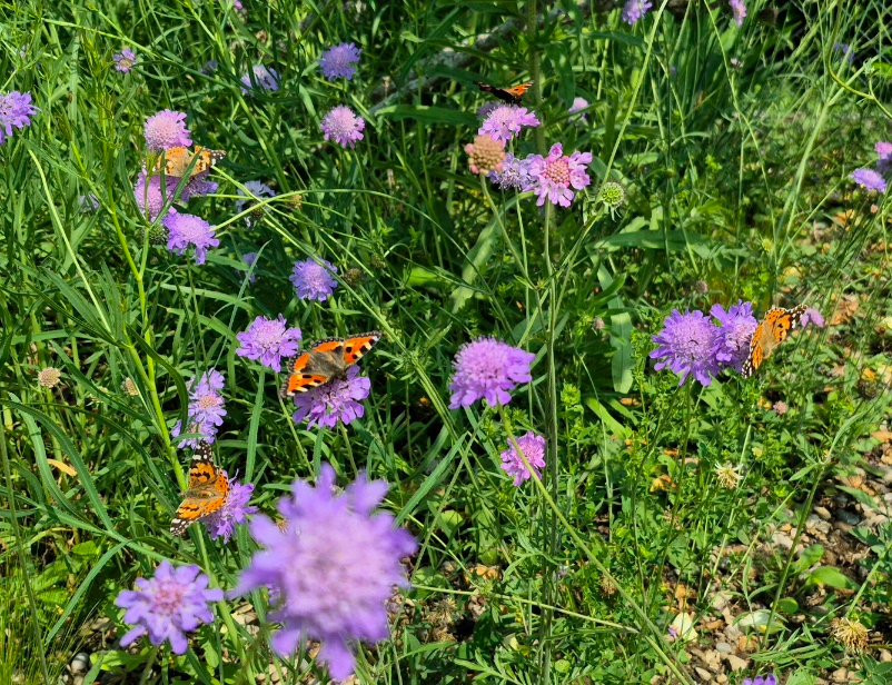 Hier waren heute den ganzen Tag 7 Distelfalter und 7 Kleine Füchse auf meinen 2 qm Taubenskabiosen zugange.