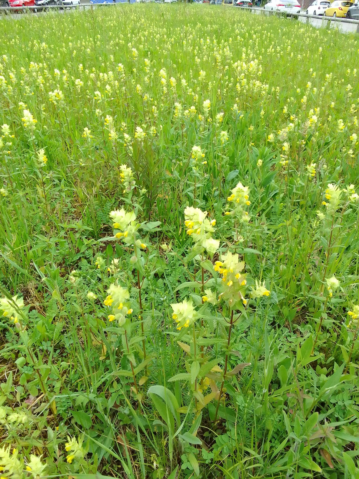 Wiese in Neuperlach/München mit Götterblumen und Klappertöpfen.
