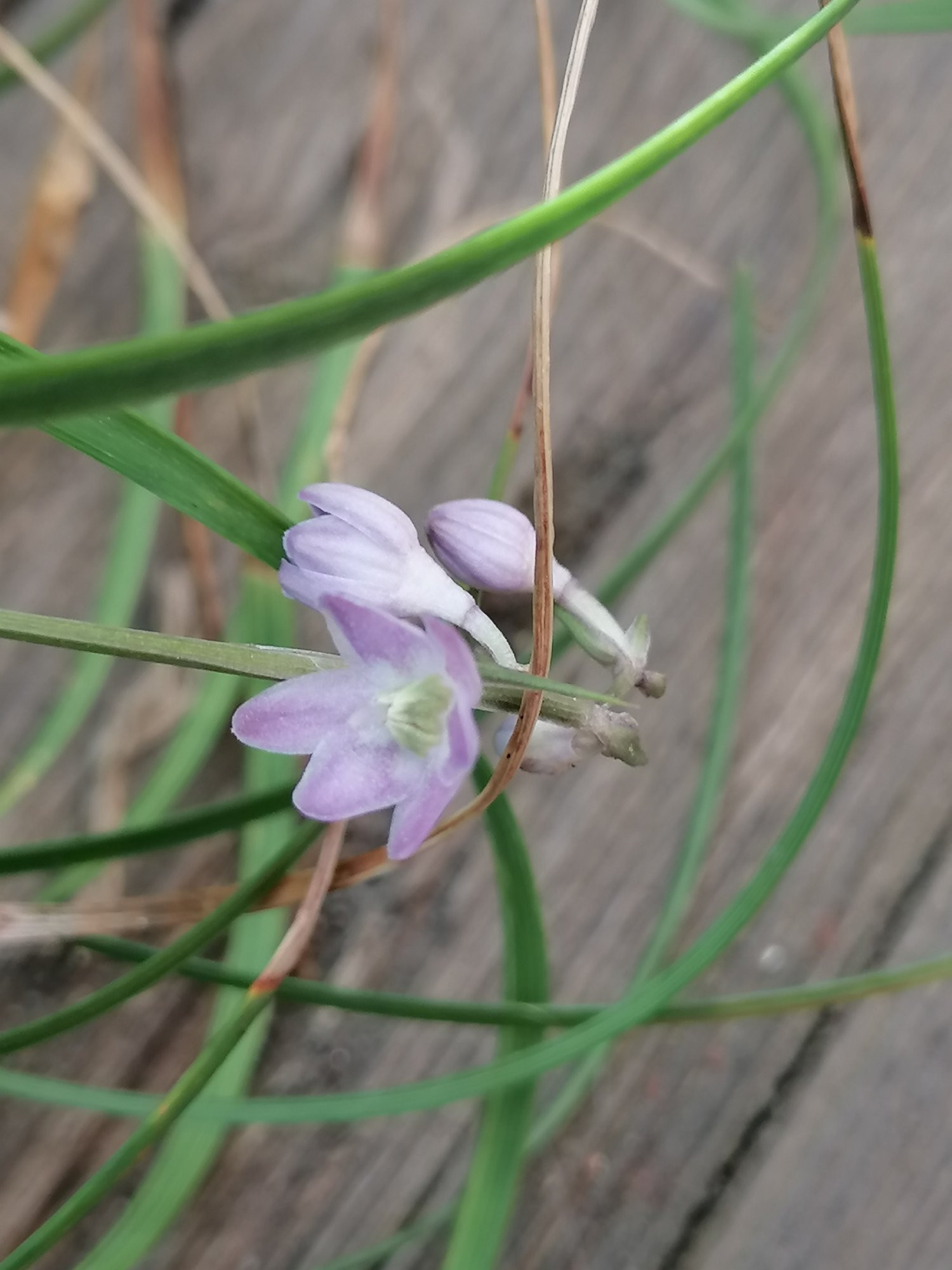 Die Blüten sind hübsch, stehen über dem Grasbusch. Aussen einheitlich hell lavendelfarben, innen, schlecht fotografierbar, dunkler Lila, ganz fein gesprenkelt.