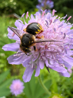 Gartenwoll Biene heute sehr ruhig auf Ackerwitwen Blume: