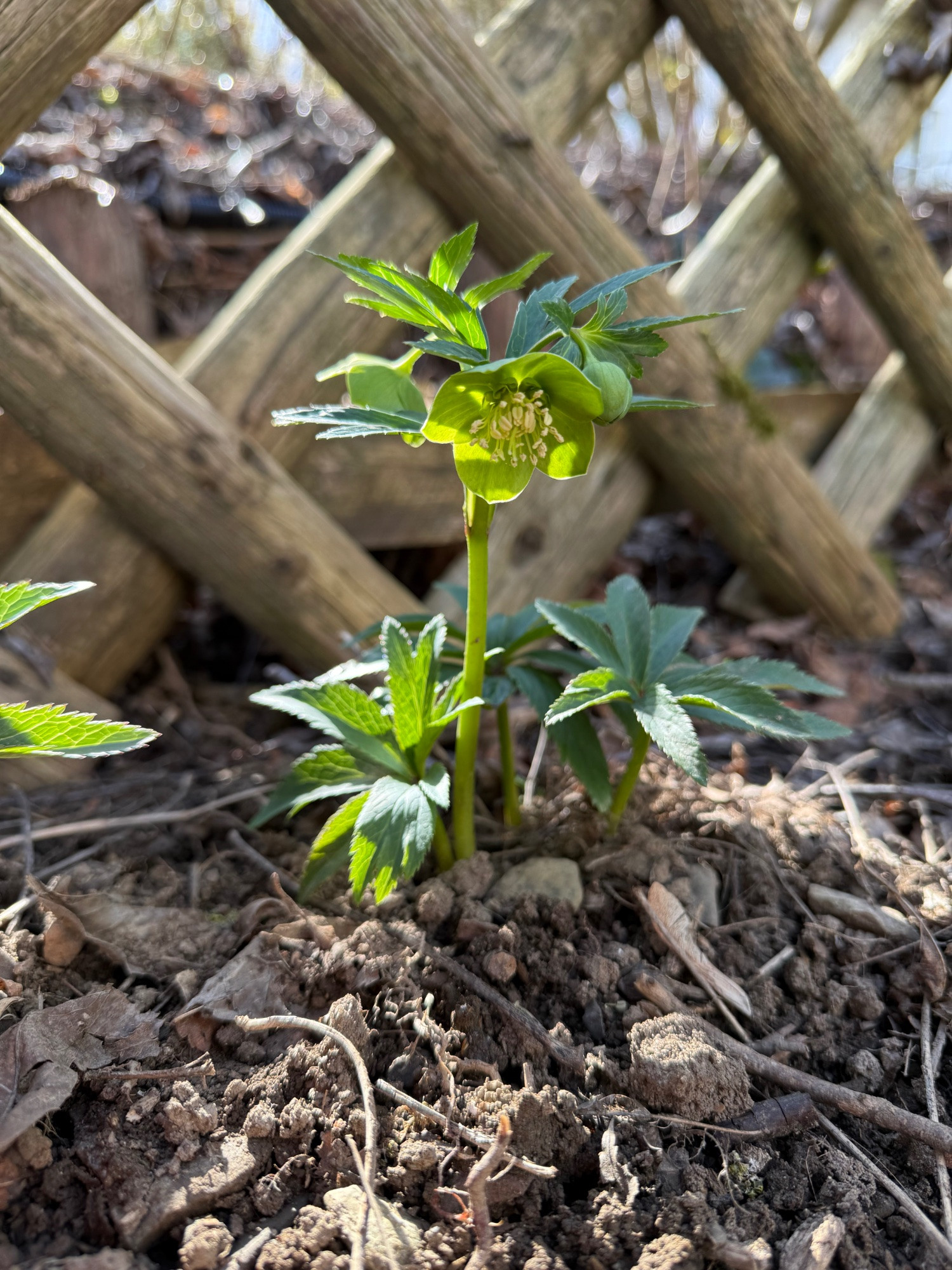 Ich sehe, ich habe versäumt, das alte Blatt der Anlass farbigen Helleborus zu fotografieren jedoch erinnert mich dies an die Lenzrose