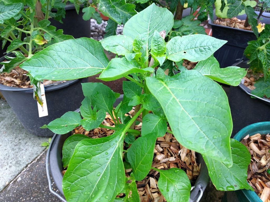 Hmm das habe ich hier auch noch nie gesehen. Schon spannend, wie viele Pflanzen sich so ähneln bei der Blättern. Da es offenbar aus der überwinterten Wurzel mittig im Eimer wächst, gehe ich stark davon aus, dass es irgendwas essbares ist. Paprika, Chili, Physalis pruinosa, Orange Berry, Jaltomate, Wonderberry hatten wir auf jeden Fall, mehr fällt mir gerade nicht ein (abgesehen von Tomate, die es definitiv nicht ist). Oder mein Vater hat irgendeine Blume gepflanzt und erinnert sich nicht mehr, aber das ist unwahrscheinlicher als das genannte Gemüse.