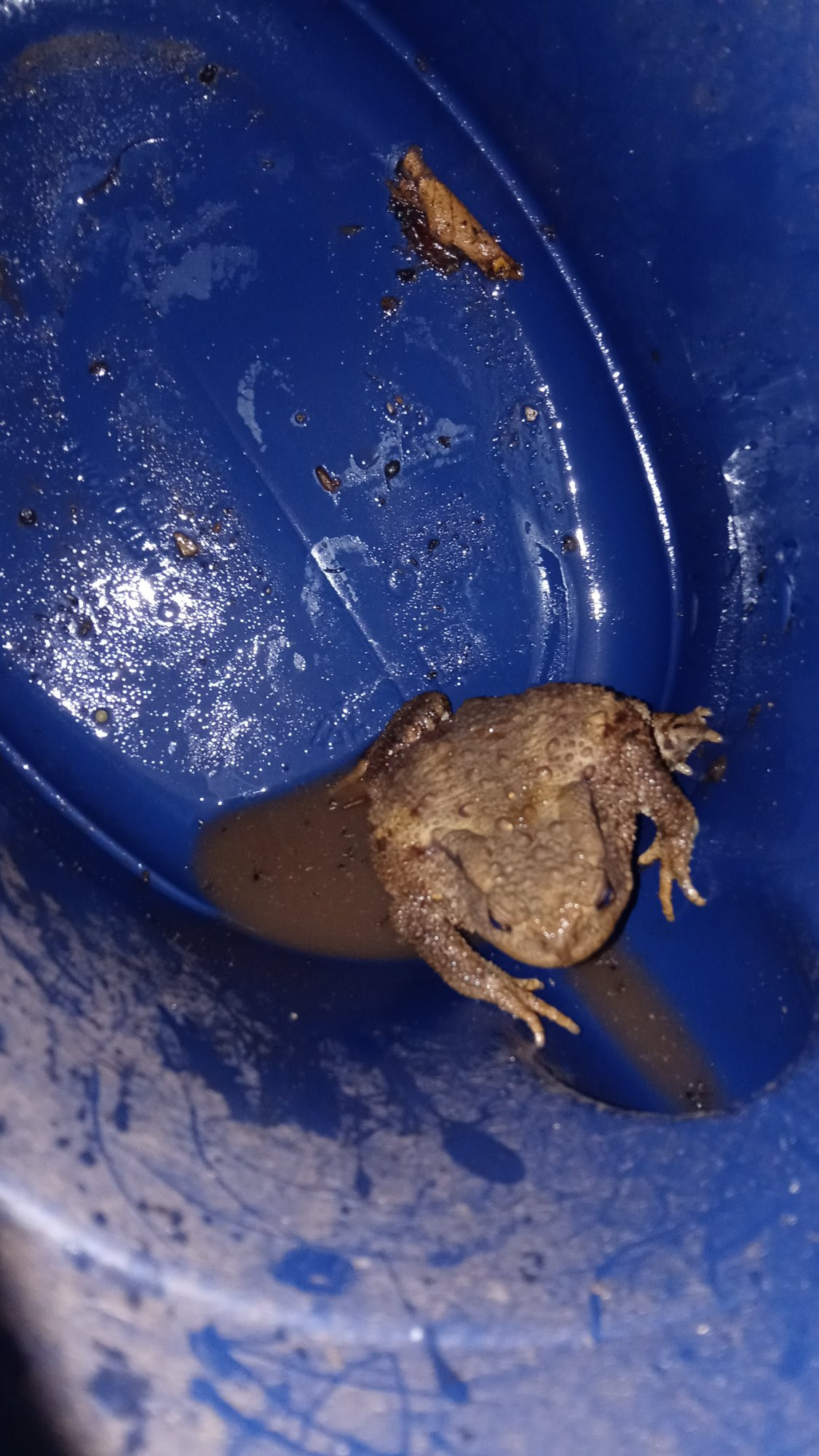 Leider hatte das Handy da nicht zur Hand, und er/sie wollte dann seitlich unter der Tür durch in den Keller, so manövrierte ich in eine Schale und setzte nach mug shot wieder im Farnbeet neben dem Teich aus