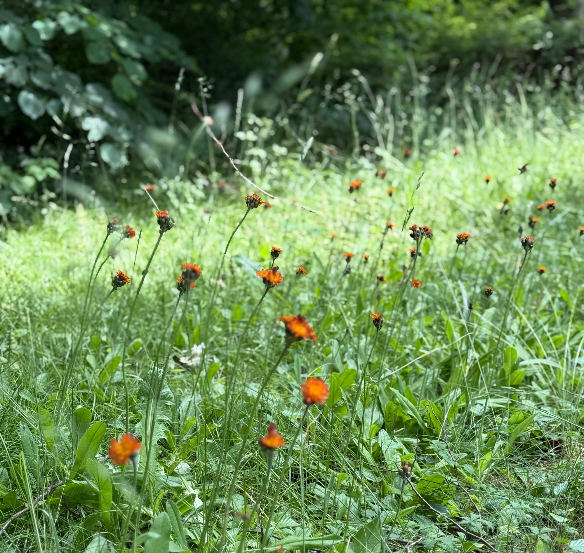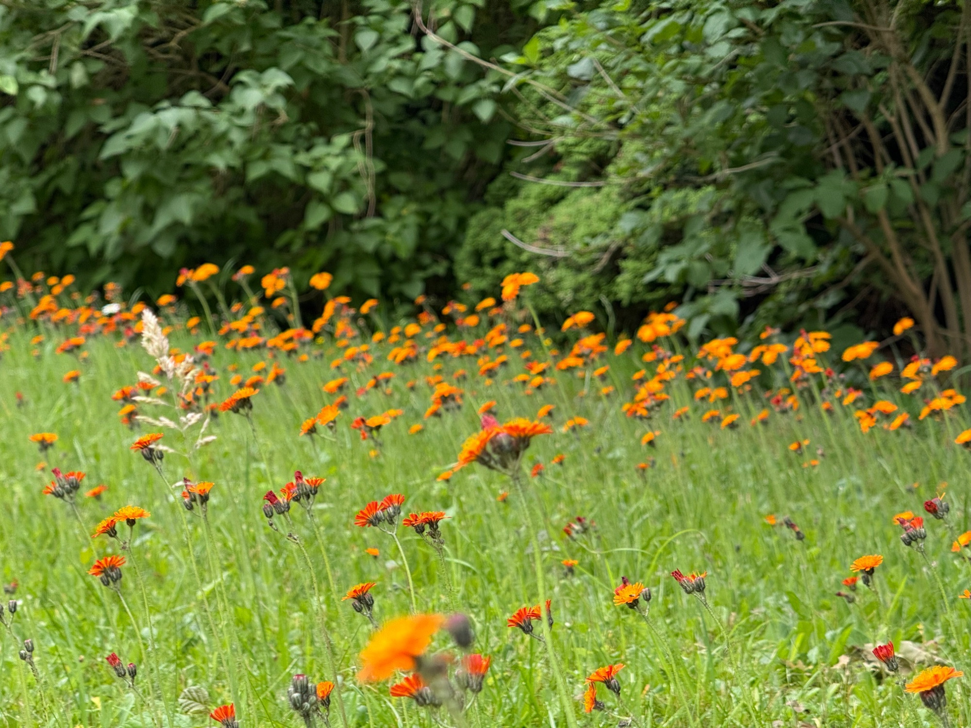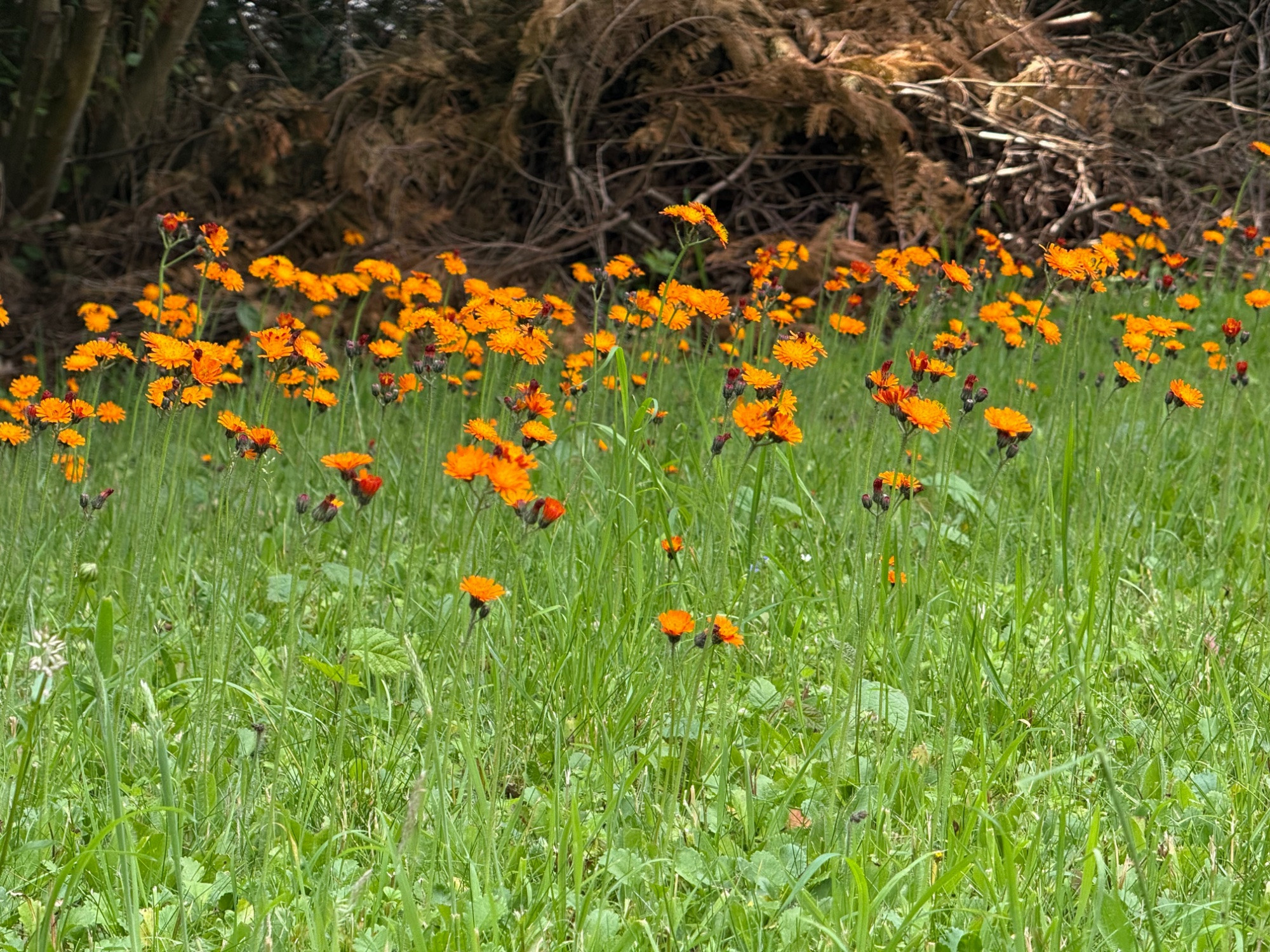 Sehr sehr schöne Kombination. Die orangefarbenen Blüten des Habichtskrauts sind hier für mich das Salz in der Suppe.