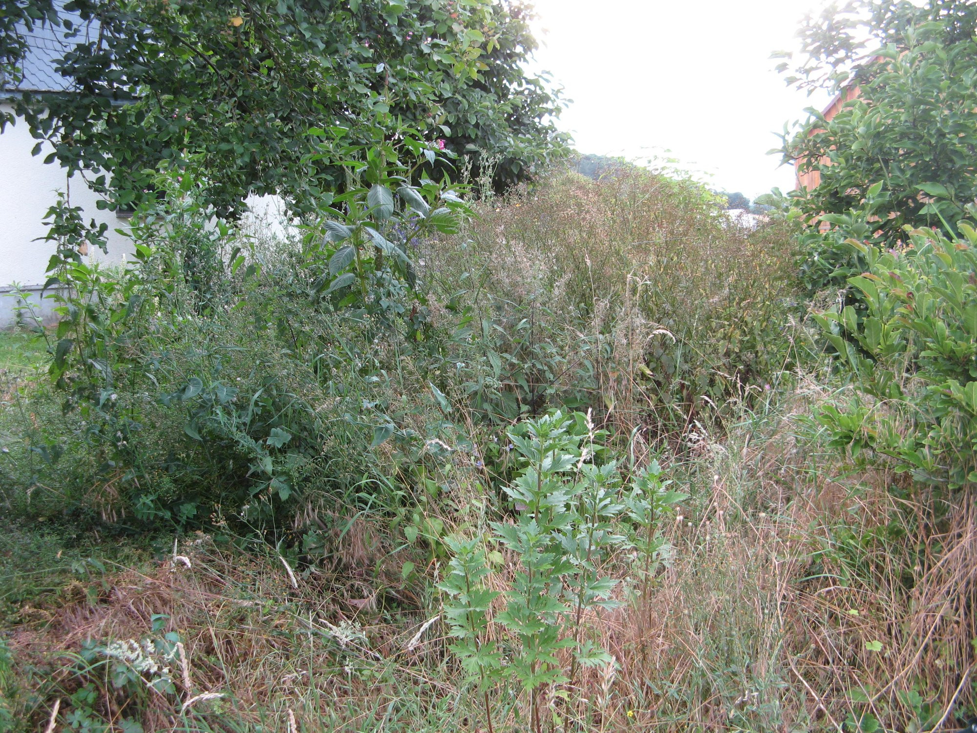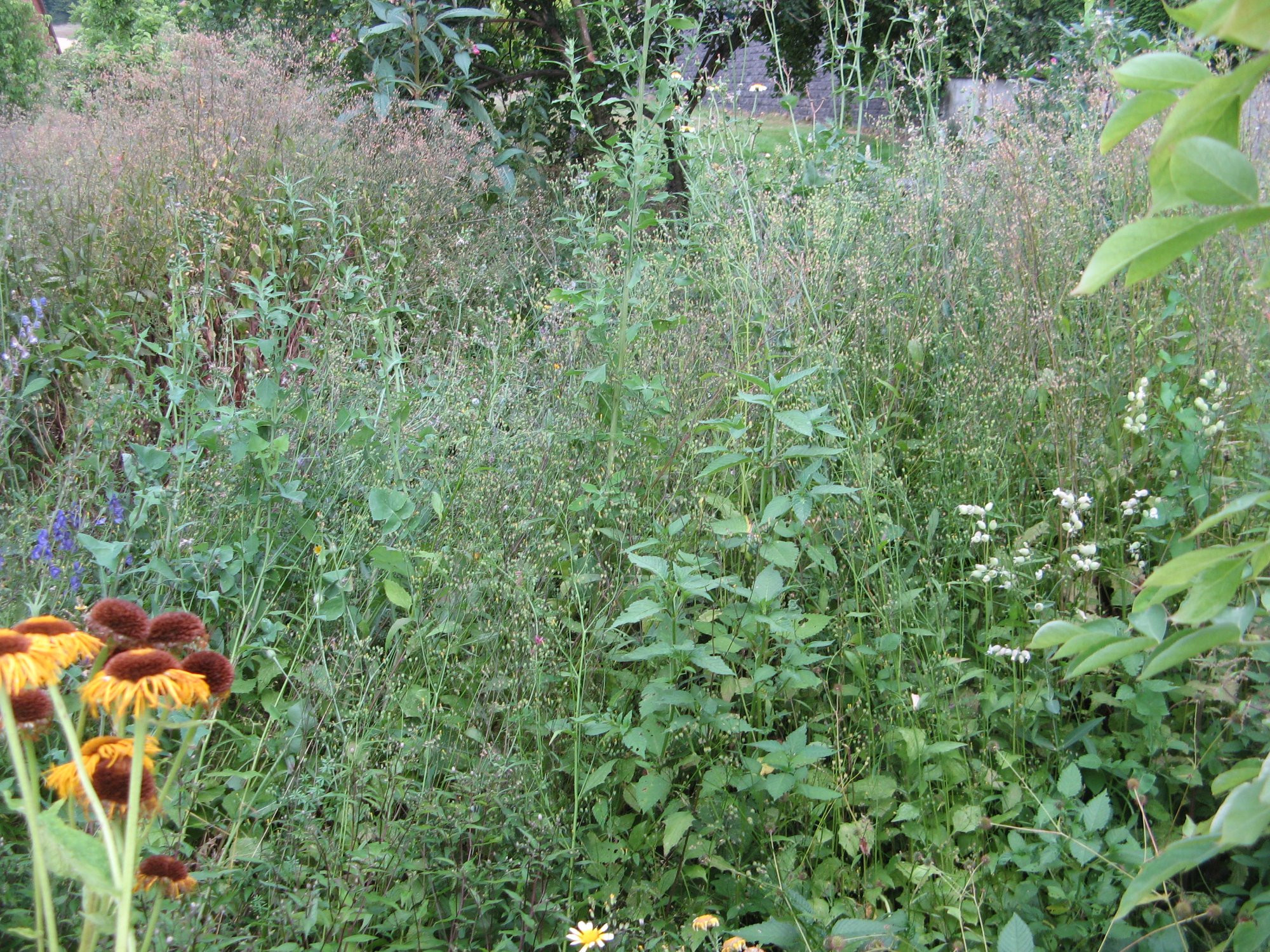 einen echten Problemort in der Staudenwiese hab ich noch. Erst wuchs dort wegen Beschattung außer Bärlauch, blauer Eisenhut und Brennnesseln durch 3 sich immer imens aussäenden sehr großen (ca. 25 jährigen) europäischen Pfaffenhütchen nicht wirklich was. Dann wurde davon 2 diesen Winter gefällt, die Stümpfe ausgebrannt (das 3. folgt mit der großwüchsigen vollkommen fehlausgezeichneten Magnolie im Hintergrund Bild 3 nächsten Winter) im Frühjahr die einst darunter wachsenden großen Brennnesselbestände/Pfaffenhütchenjungwuchs komplett entfernt, vorgezogene Stauden gesetzt, "Bauerngartenblumen" dazwischen gesät und seitdem wächst da trotz der Trockenheit imenses bis > 2m hohes gelbblütiges "Unkrautwerch" (Kohl- und anderes gelbblütige einjähriges "weiche" distelartige, Stachellattich, indisches Springkraut - wie das da nur hin gekommen ist, gibt in weitem Umkreis keins