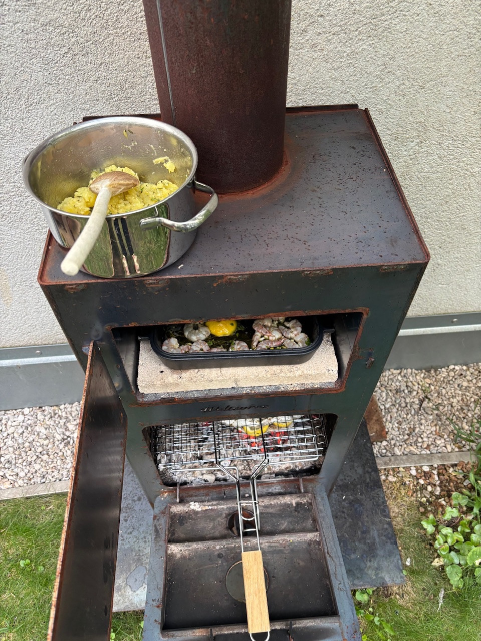 Hast du auch mal frisches Holz auf die Glut draufgelegt um etwas anzuräuchern? Würde beim Lachs zB passen.
