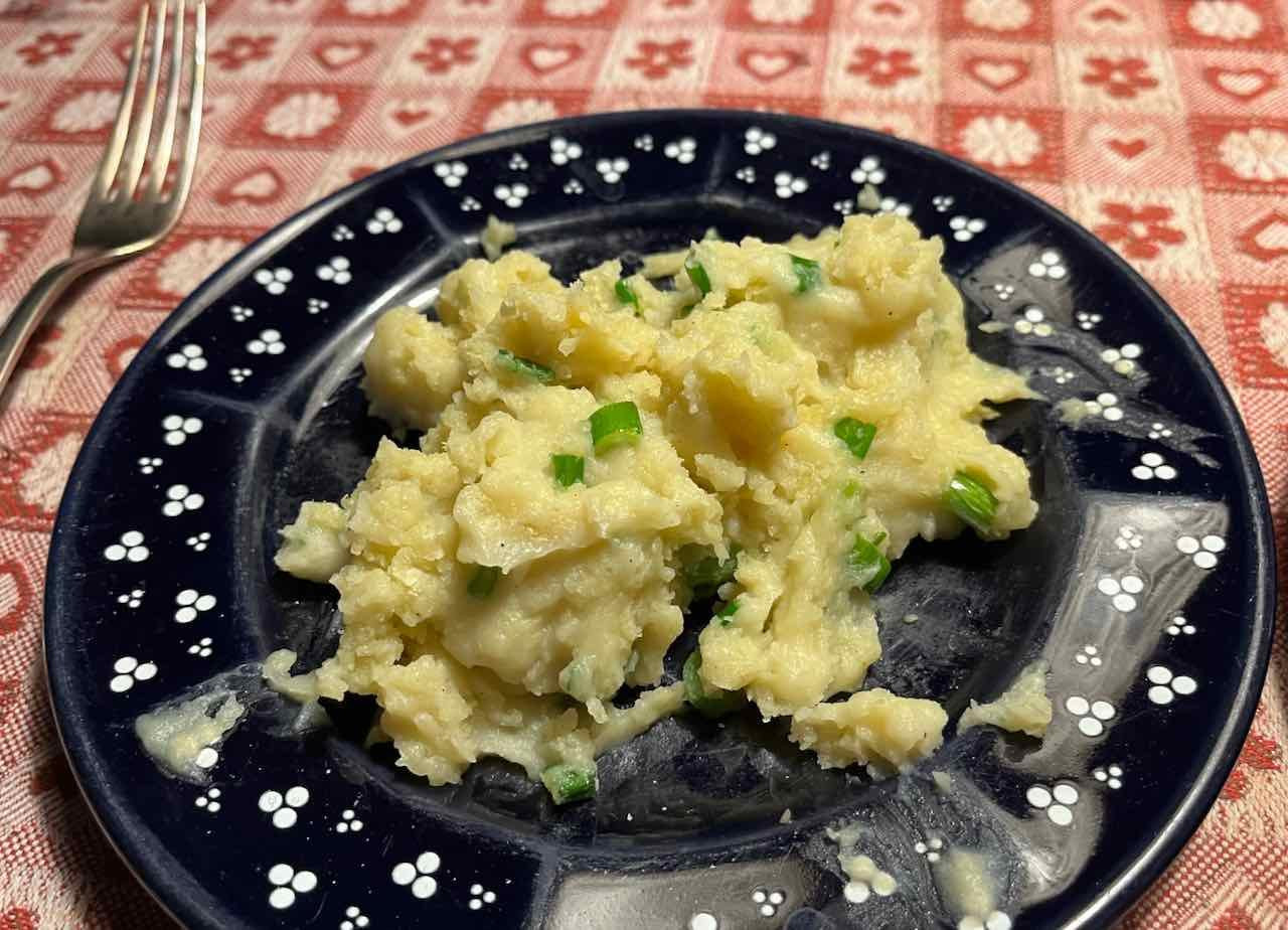 Rohpolnische und Kartoffelpüree mit Frühlingszwiebeln zum Franziskaner Weißbier alkoholfrei