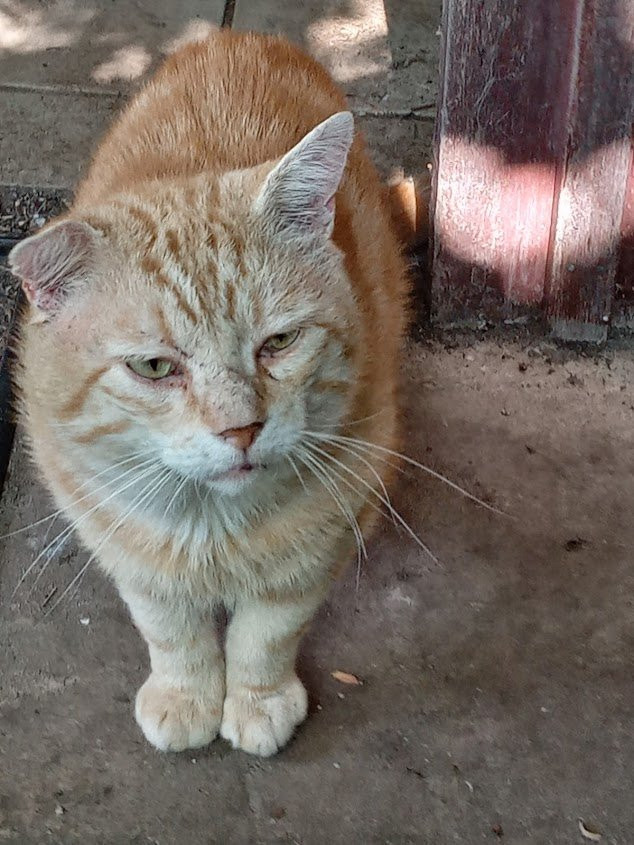 Ja, Bruno ist das rote Katzentier. Ein ganz lieber, der Bauchkraulen über alles liebt. Leider hat er vermutlich sehr schlechte Zähne und müsste auch kastriert werden. Bisher hab ich es nicht geschafft ihn zu kriegen. Er kommt auch vorzugsweise dann, wenn der TA zu hat.