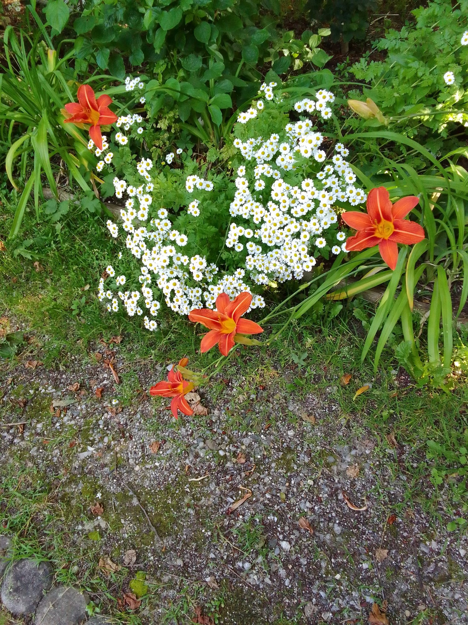 Dann muss ich mich begnügen mit dem im Gartencenter mal gekauften "Hemerocallis white", der endlich auch mal was üppiger wird und in Natura fast weiss ist.