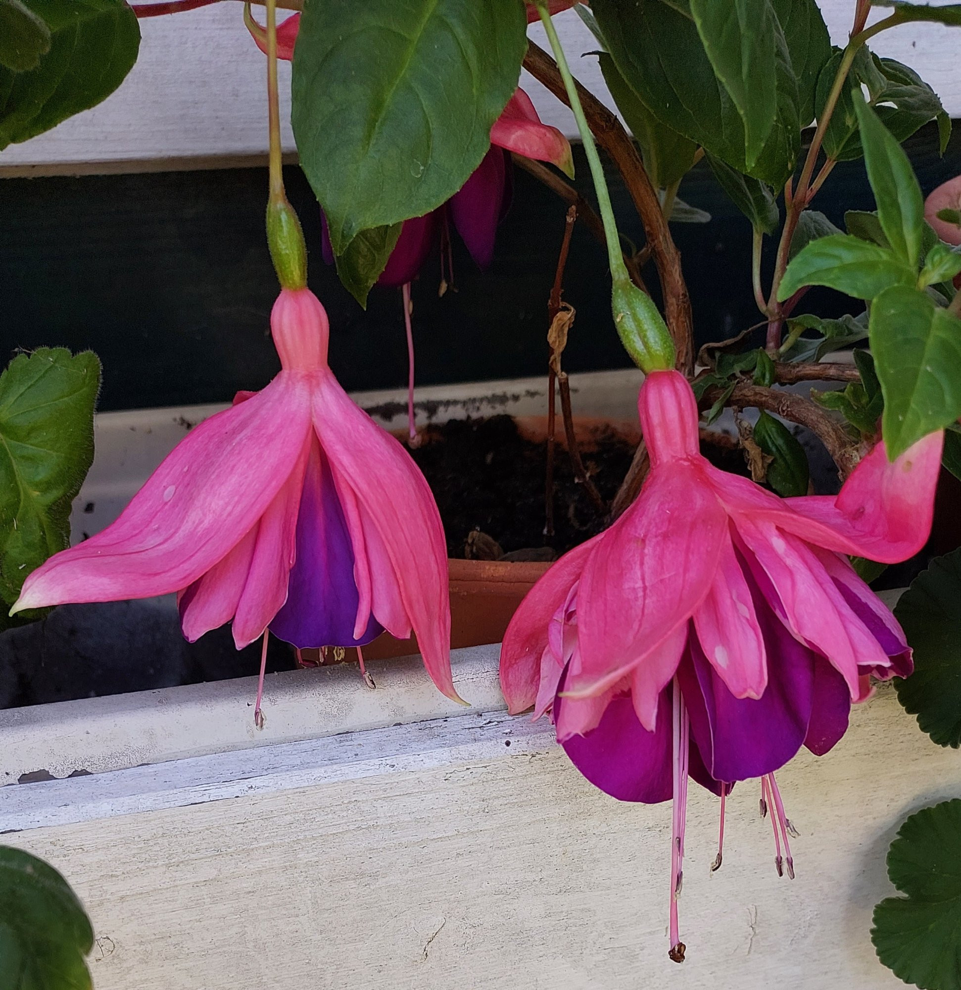 Eine Fuchsie mit mur 3 Blüten, aber was für welche! 7 cm!!