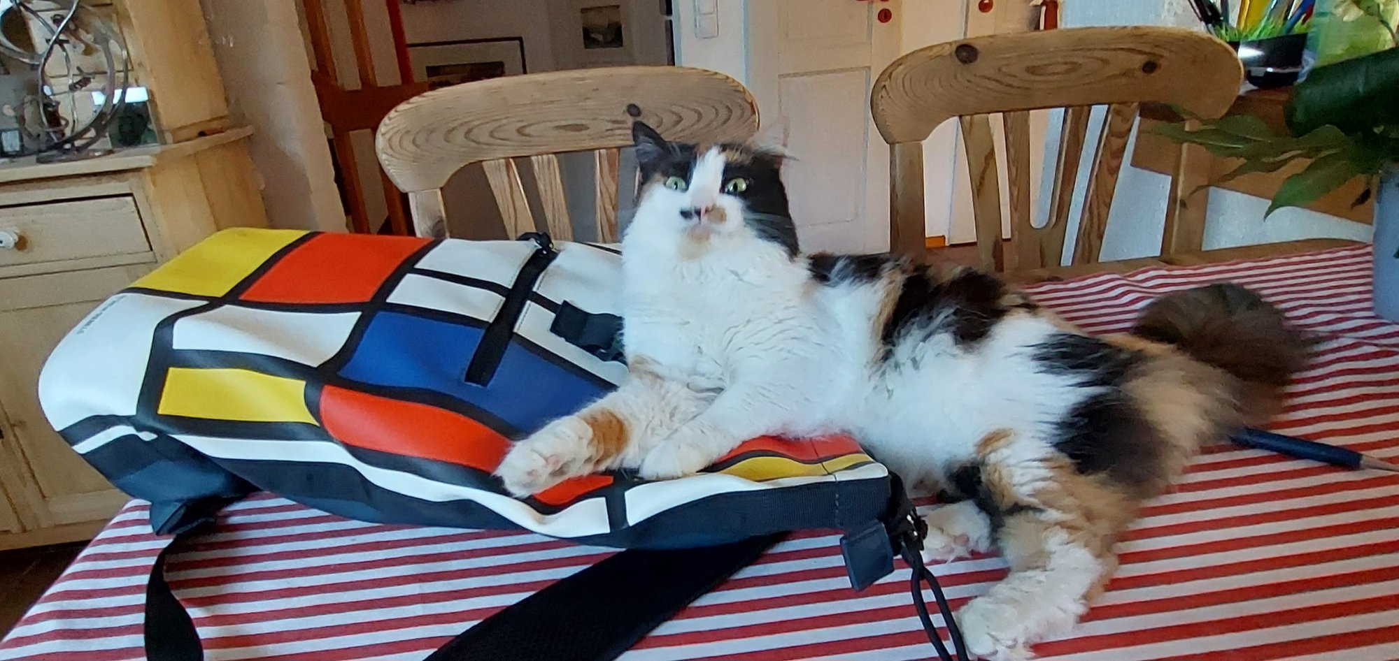 Heute morgen typisch: sie legt sich auf meine Gästeführerintasche. Sie denkt "die bleibt hier und somit du auch".