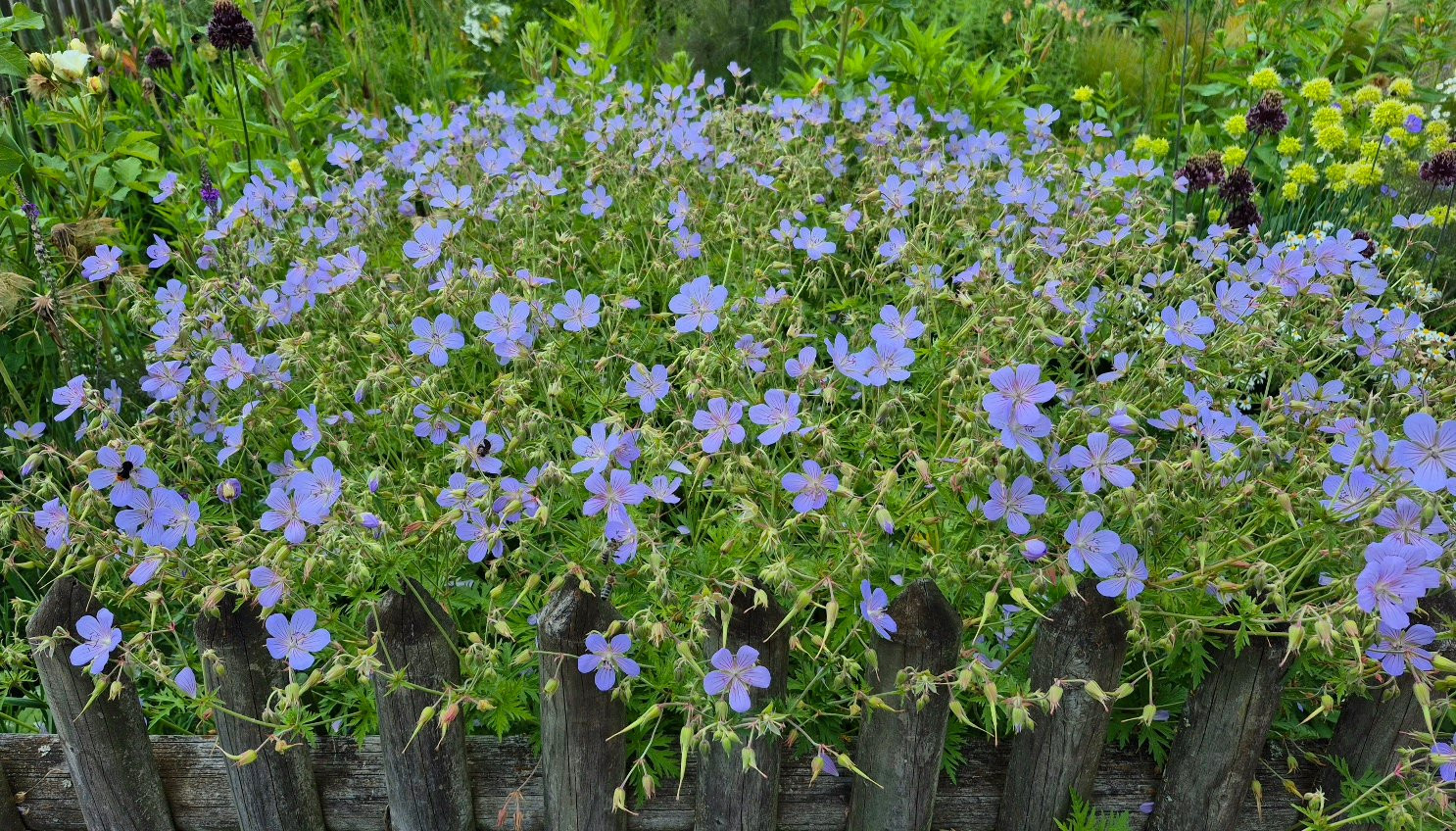 Ich habe auch noch Potentilla als Umrandung. Entscheidend ist, Potentilla mag Kalk nicht, Storchschnäbel mögen Kalk, kommt also ganz darauf an, was die Pflanzen daneben wollen.