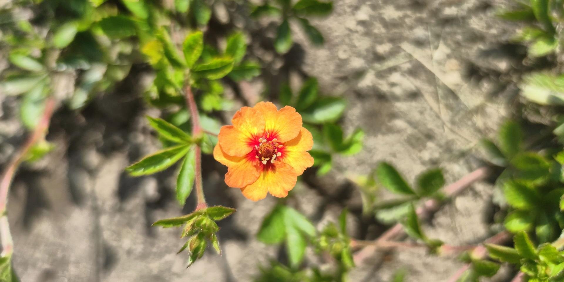 Mehr im Schatten habe ich Potentilla tridentata 'Nuuk', der ist aber auch für die Sonne geeignet. Ich weiß noch nicht so recht, was ich von dem halten soll. Der soll eigentlich den ganzen Sommer in weiß blühen. Ich wollte davon nicht zu viel um die Hortensie, damit sich das weiß von Hortensie und Bodendecker nicht schlägt, habe mich aber nicht getraut, den tonguei in den Schatten zu setzen.