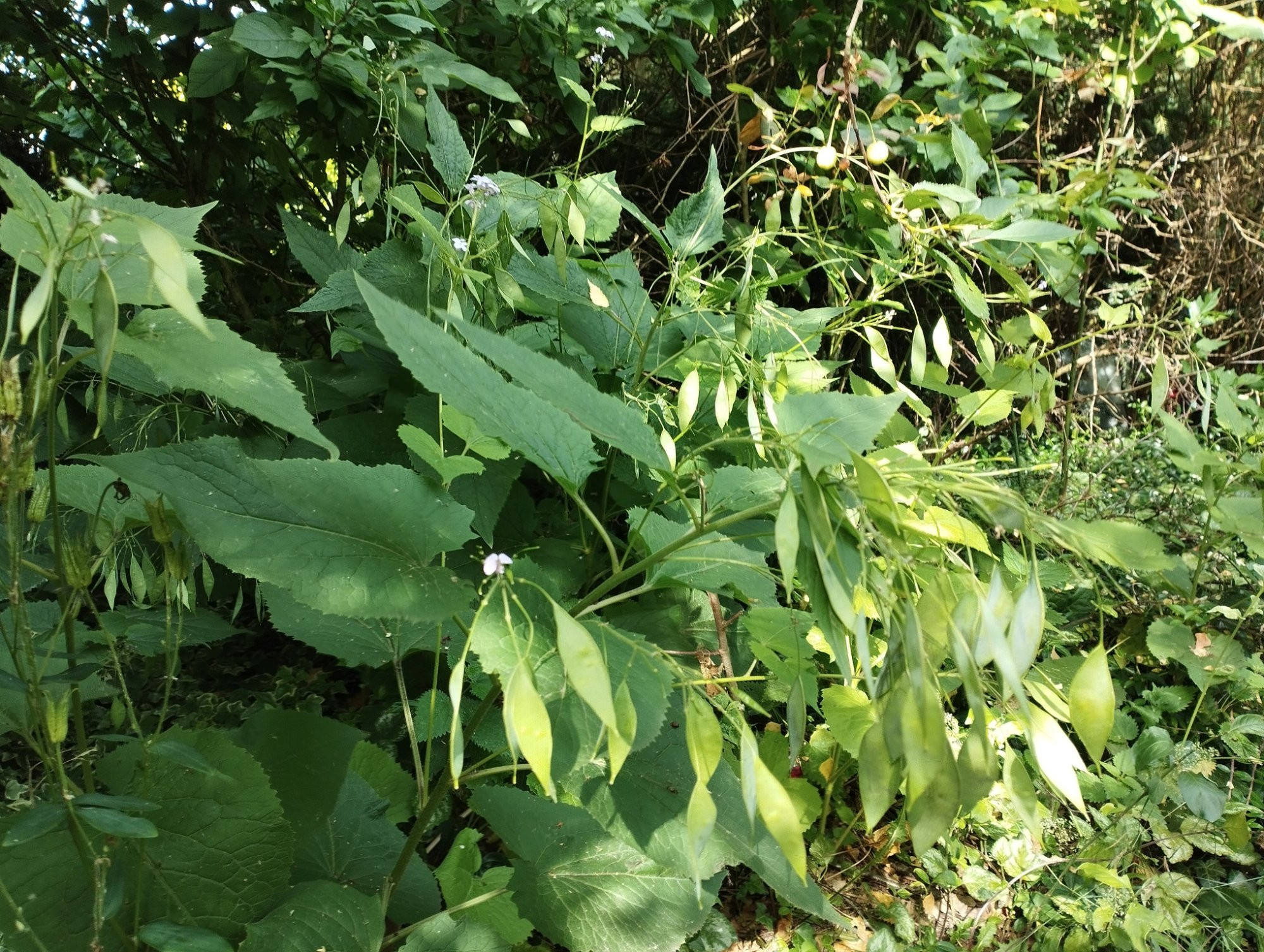 Wie auch immer, ich wollte hier nur zwei Pflanzen erwaehnen, die es wohl jetzt oefter in Gaerten gibt, aber bei uns wohl eher zufaellig aufgetaucht sind, das Ausdauernde Silberblatt und den Wald-Geissbart .