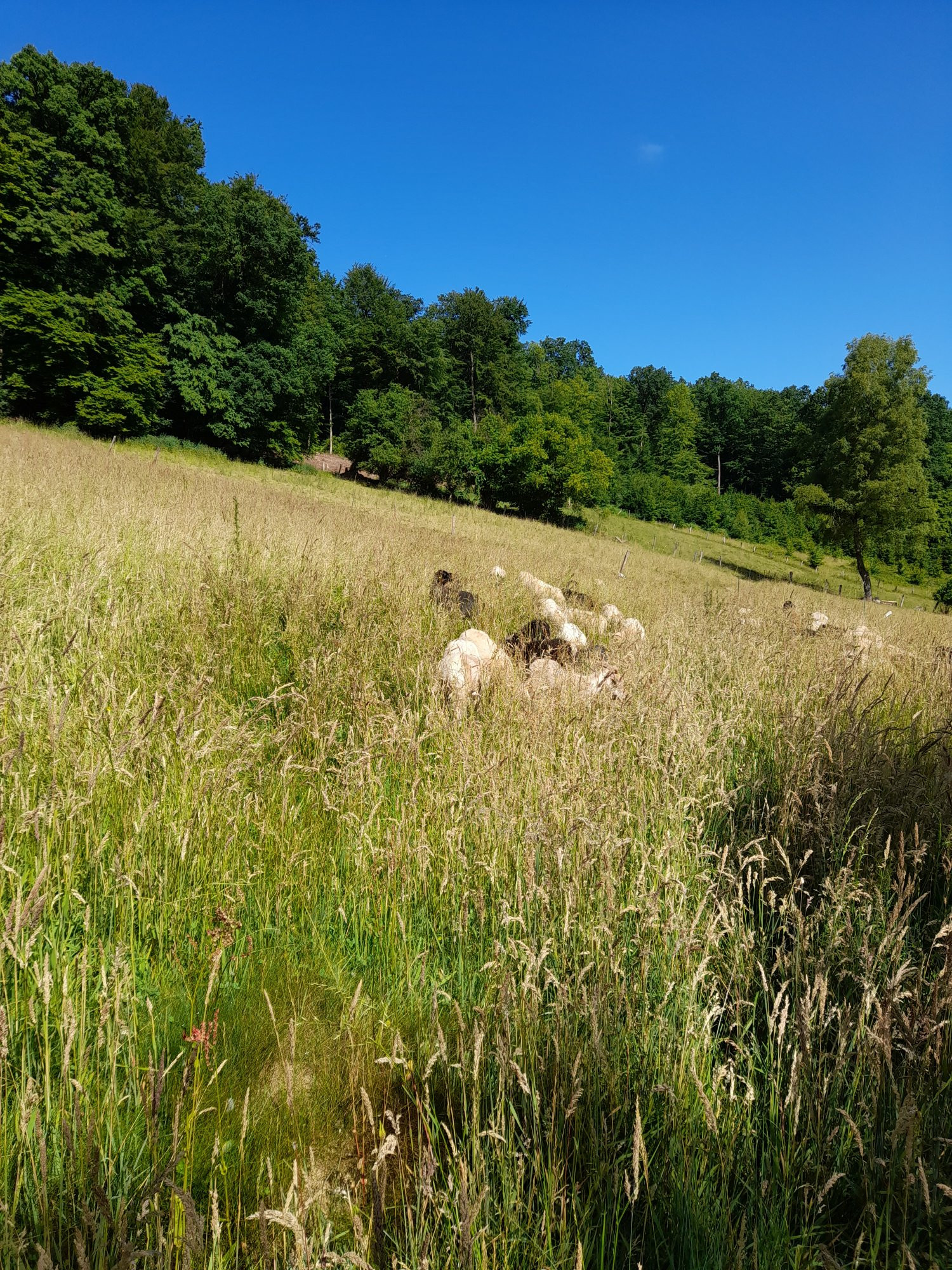 Wir haben die Böcke auf die Lummerke gebracht, die ein - zumindest die erste Hälfte- furchtbares Theater gemacht haben. Alter Falter! Neue Zuwegung am großen Ende der Fläche. Und da muss man durch den Bach tippeln.
