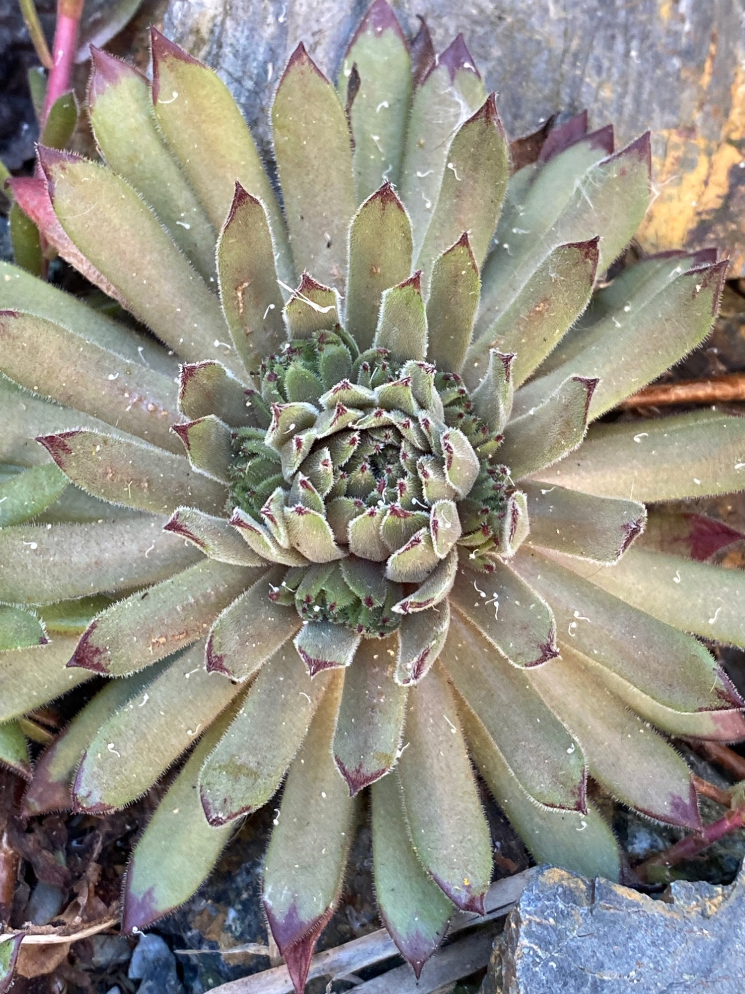 Heute habe ich versucht, sie mit einer Pflanzen-Erkennungs-App zu identifizieren, und dabei zwei unterschiedliche Ergebnisse bekommen: Sempervivum tectorum und Sempervivum calcareum.