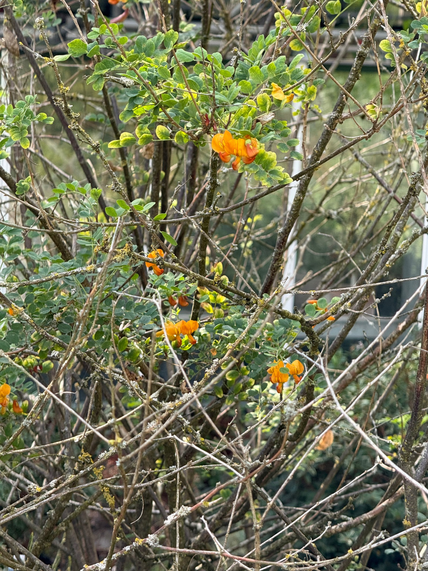 Colutea persica buhsei hat offenbar gelbe und orange Blüten an einem Strauch