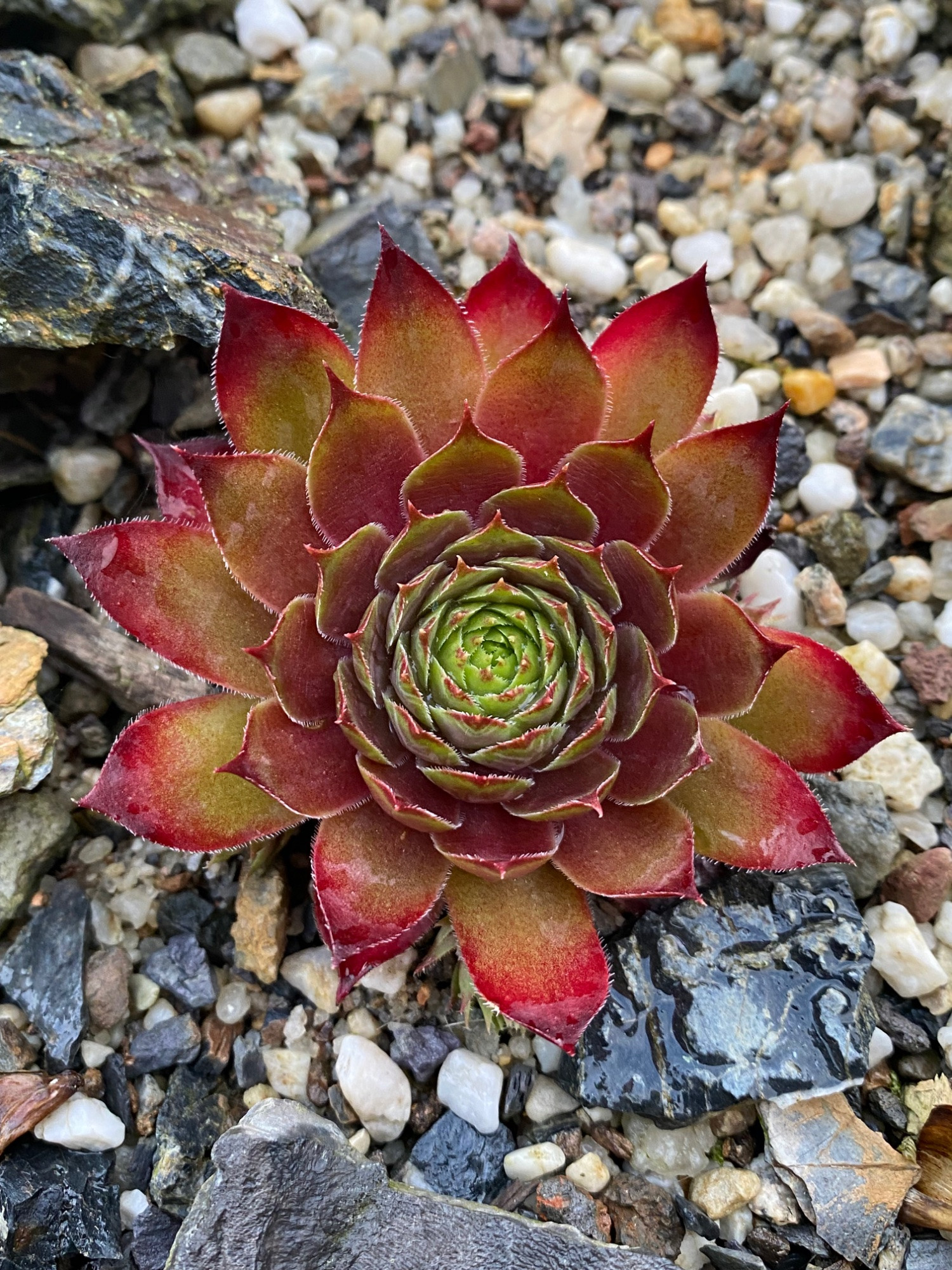 Heute habe ich versucht, sie mit einer Pflanzen-Erkennungs-App zu identifizieren, und dabei zwei unterschiedliche Ergebnisse bekommen: Sempervivum tectorum und Sempervivum calcareum.