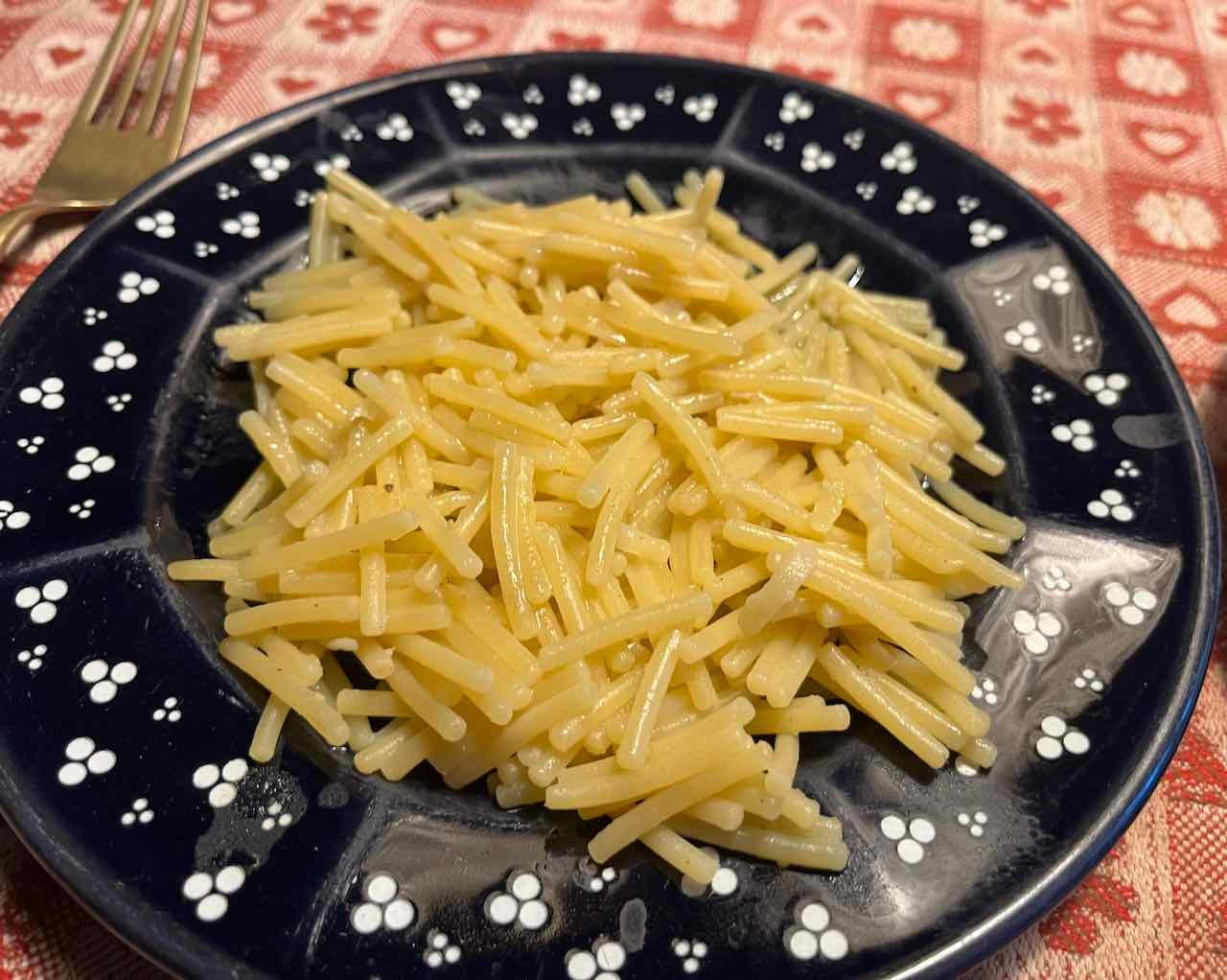 Hauptgerichte Kabeljaufilet asiatisch mariniert und gedämpft sowie Fideo gruseo aglio e olio à la Schubeck zum Pinot blanc "Black Forest"