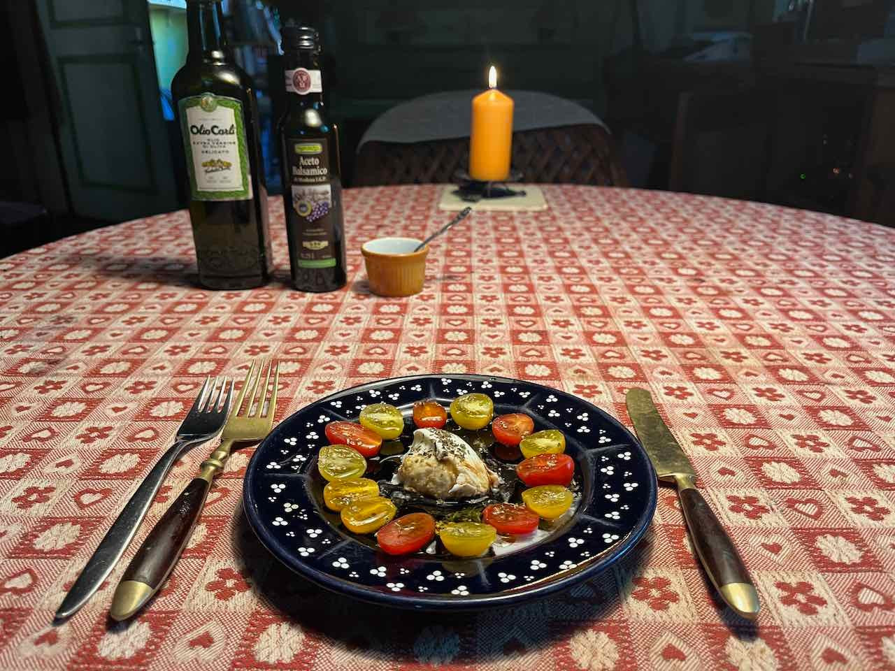 Vorspeise Caprisalat mit Rispentomaten und kampanischem Büffel-Mozzarella