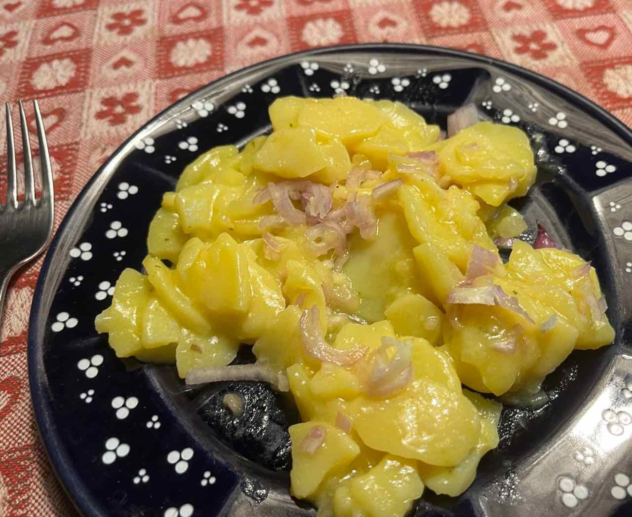 Nürnberger Rostbratwürste sowie Kartoffelsalat mit Schalotten zum Sauvignon blanc 2022 "Whitehaven" aus Neuseeland