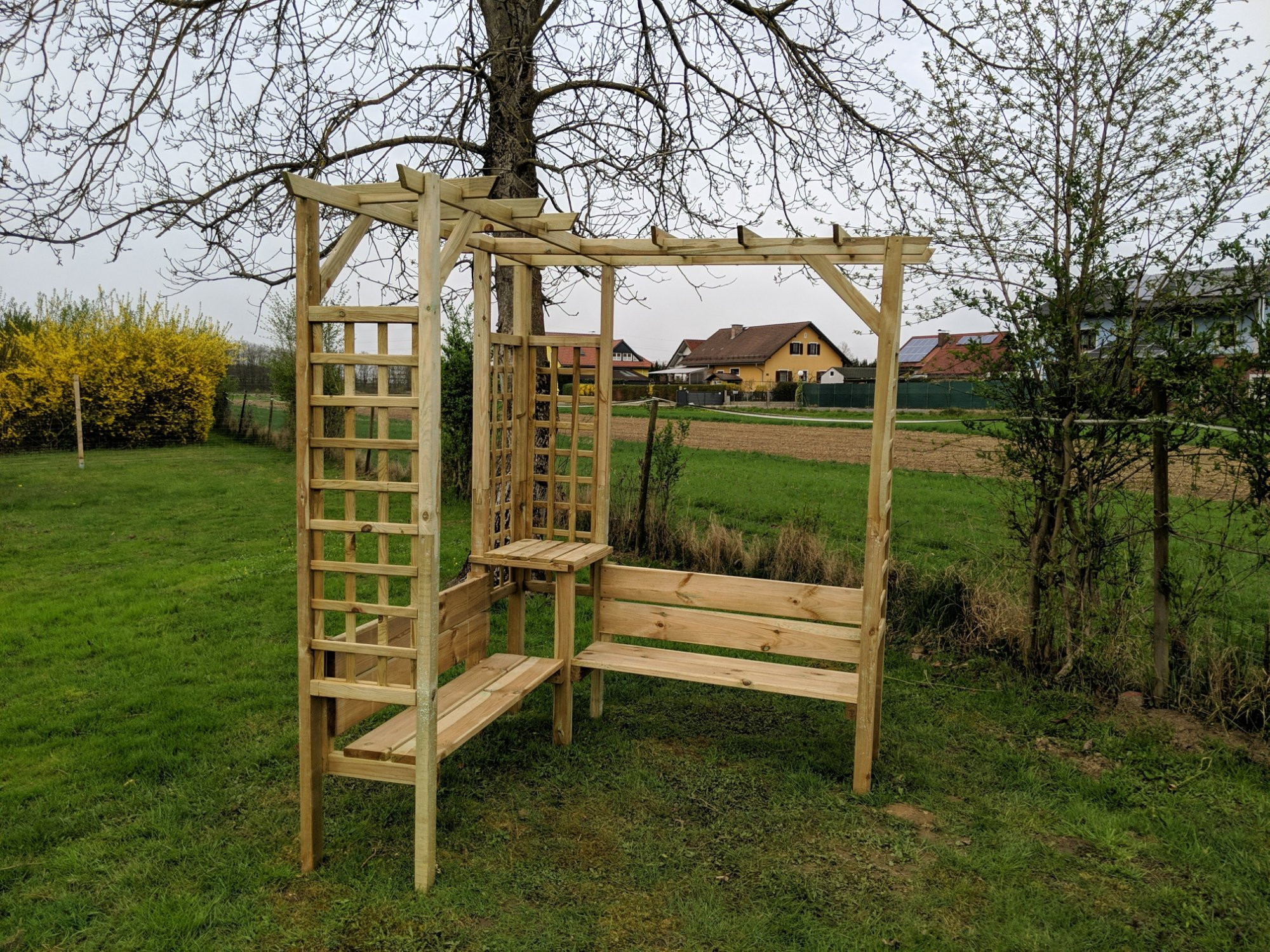Ja, der Laubengang geht noch ein ganzes Stück weiter. Es sind 14 Bögen und am Ende eine Sitzecke.