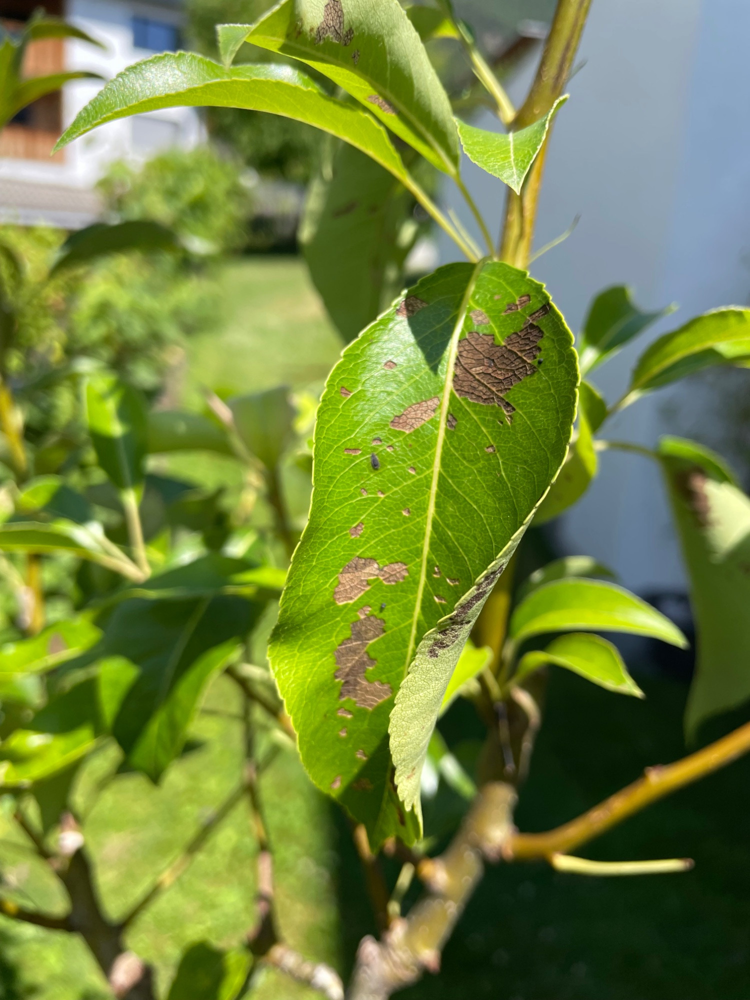 Bei der Harrow Sweet haben einige Blätter so vertrocknete Flecken.