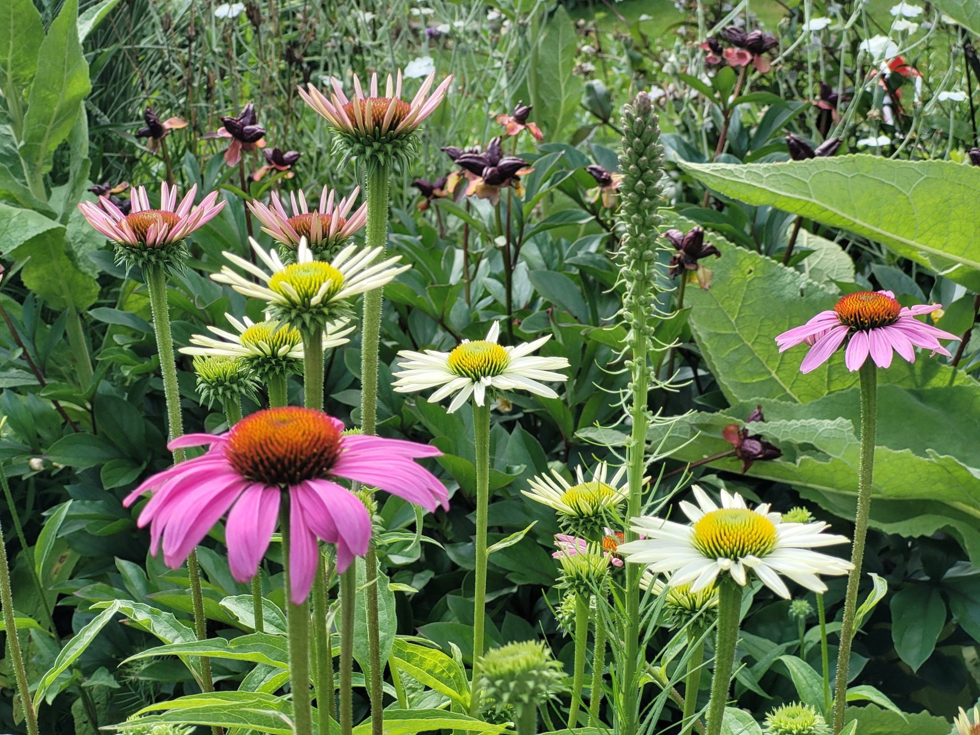Die verschiedenfarbigen Sonnenhüte zusammen gefallen mir besonders, aber alle anderen Fotos zeigen auch schöne Gartenbilder.