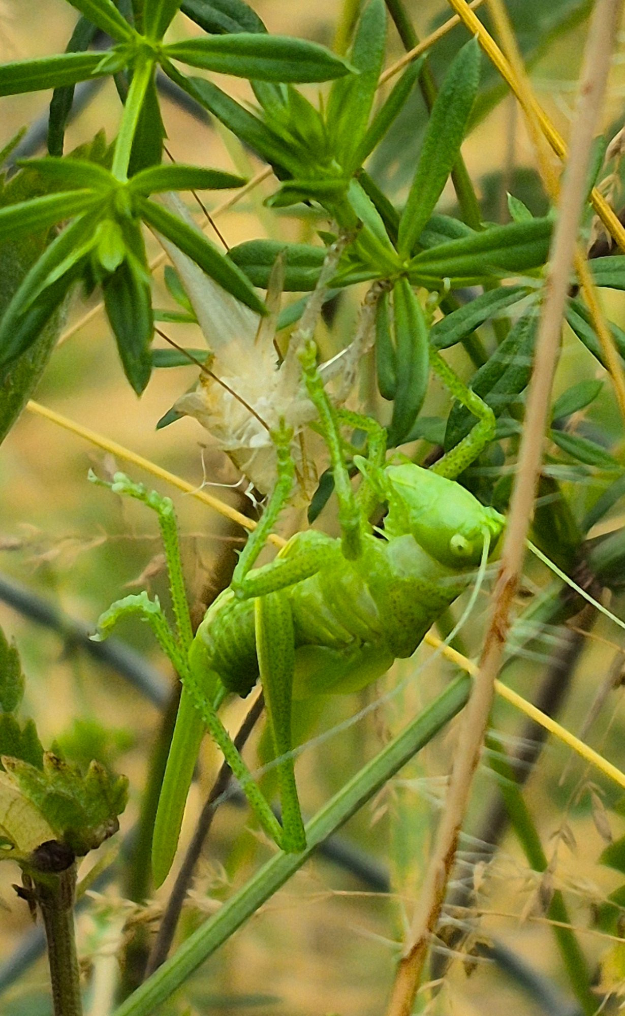 Eine weibliche Zwitscherschrecke hat sich gerade gehäutet