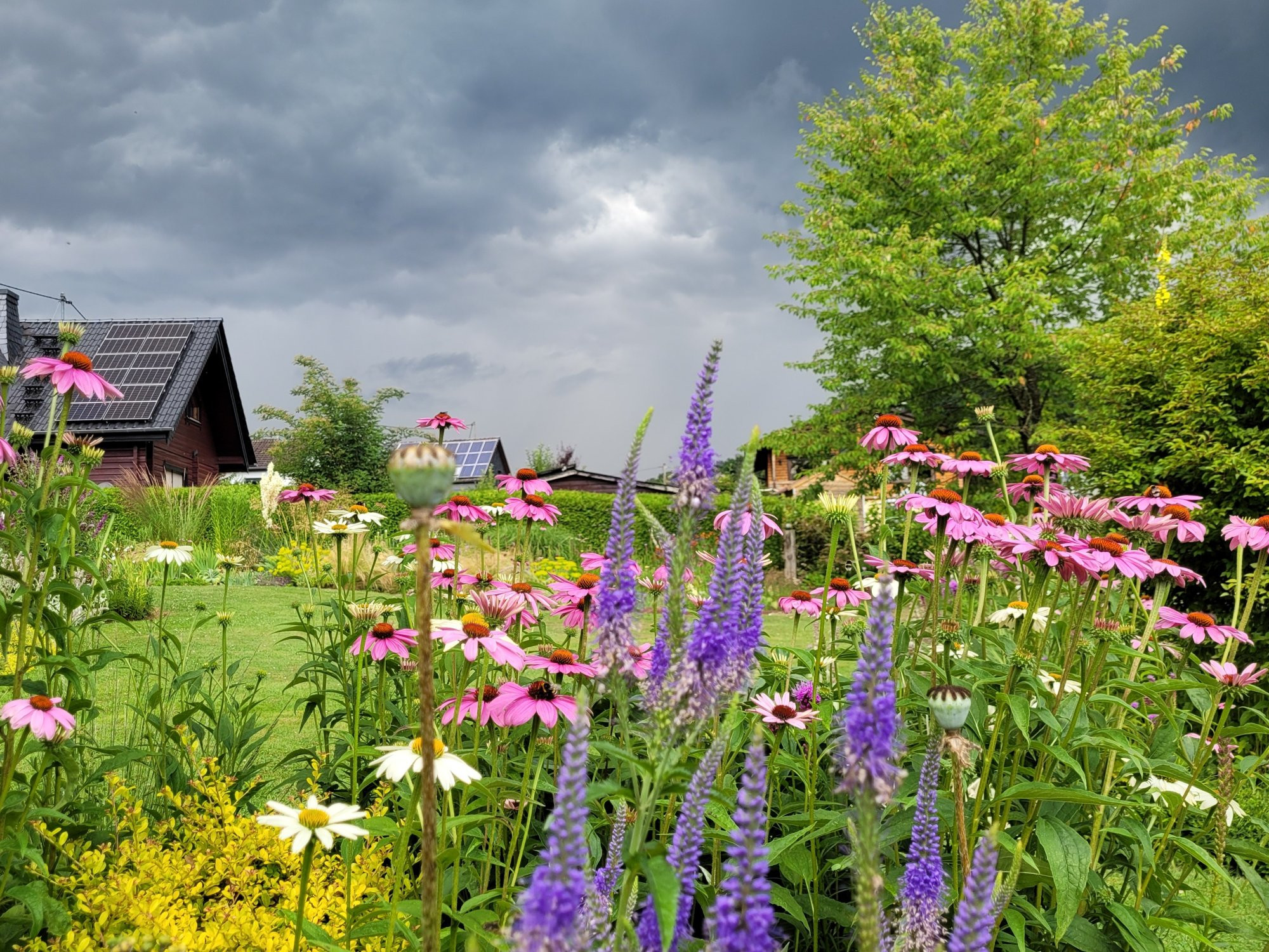 Gerade hat ein saftiger Schauer nochmal 6 mm Starkregen in 10 Minuten abgeladen und mich aus dem Garten vertrieben. Damit sind wir bei 21 mm seit gestern früh angekommen