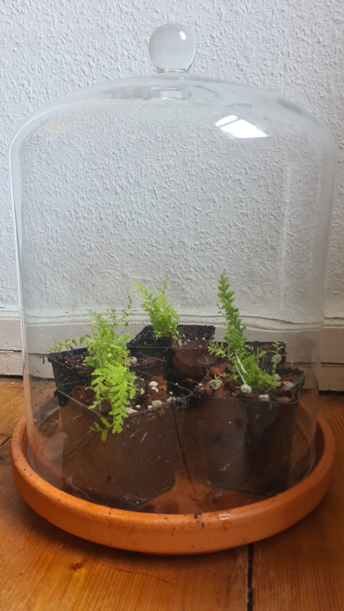 Kleines Update: Sie wachsen, langsam aber stetig und nun habe ich mal die Glasglocke erst gelüftet und inzwischen weggenommen zum Akklimatisieren. Ich tippe, Ende September/Anfang Oktober kann ich euch ein Pflänzchen schicken.