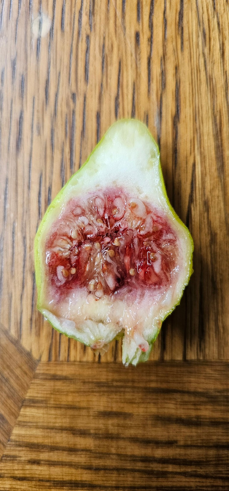 Breba von einer Abmoosung meiner RdB im Topf. Außen sah sie schön aus, innen hätte sie noch ein paar Tage gebrauchen können.