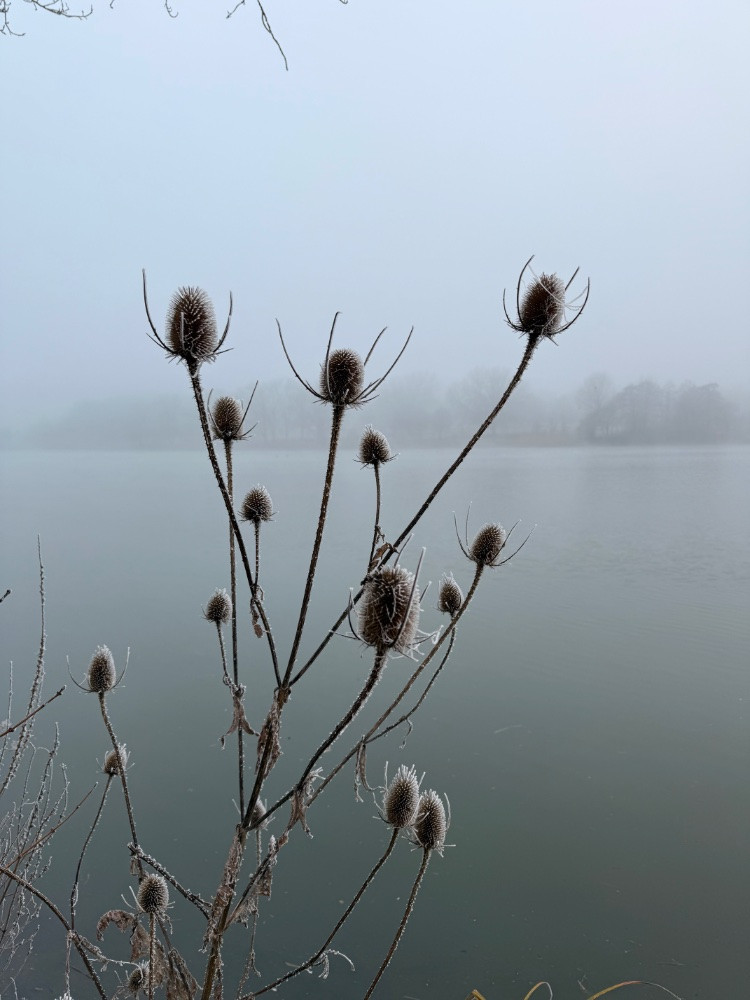 Mir ist aufgefallen die Kardenstängel leuchten silbrig wenn die einige Zeit von der Sonne geblichen worden sind, das hatte durchaus fernwirkung. Mich wundert das es mir bisher nicht aufgefallen ist habe doch schon ein paar Jahre Kardenstängel im Garten stehen, vllt wird das aber nur auf sehr sonnigen Standorten so: Mit dem Nebel auch eine Tolle Struktur