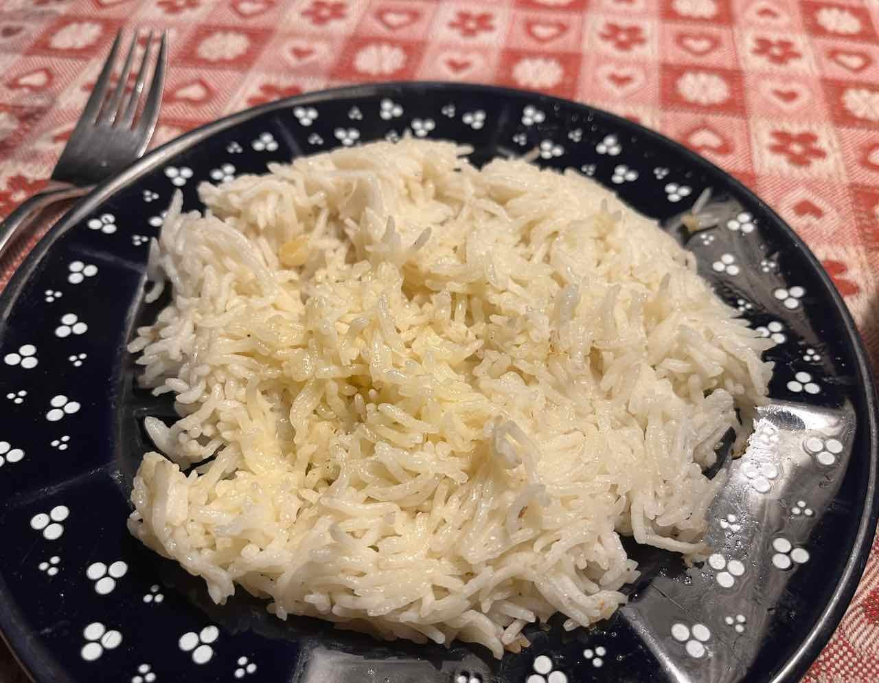 Black-Tiger Garnelen asiatisch mariniert und gebraten sowie Basmatireis mit Butter und "Reisparfüm" gedämpft zur "Petit Révolution"