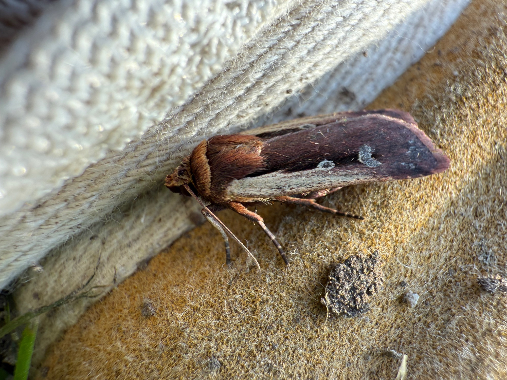 Beim beikraut entfernen ist mir dieser eigentlich recht sympathisch wirkende wenn auch unscheinbarer Falter auf den Handschuh geklettert: