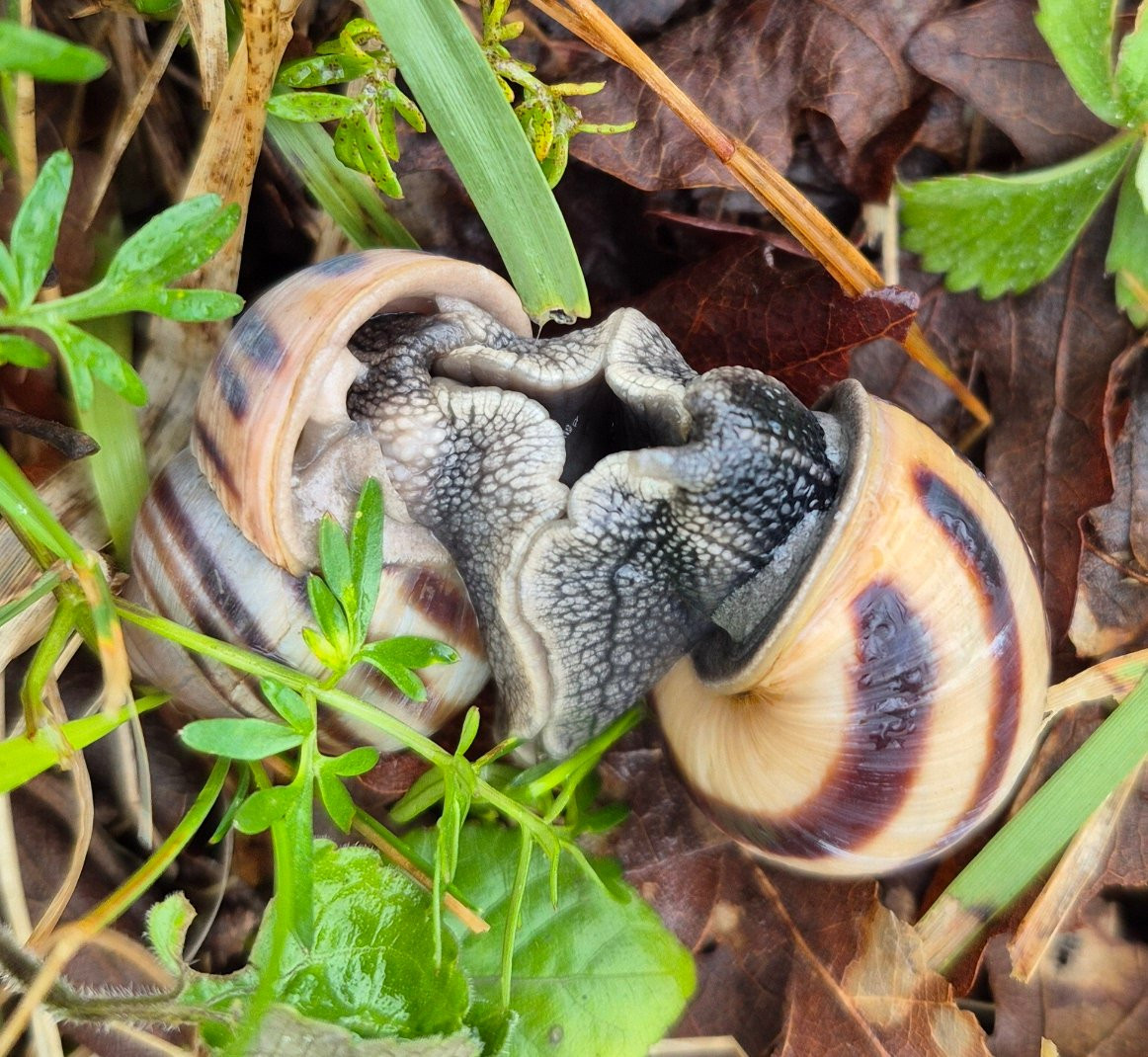 Ist das erste Mal, dass ich zwei Exemplare gleichzeitig im Garten sehe. Sonst habe ich immer nur eine Weinbergschnecke gesehen