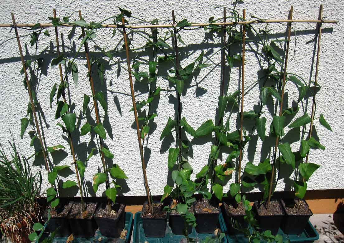 Die Pflanzen sind in 11 x 11 Töpfen - die Stäbe sind 80 cm hoch ( ab Topfoberkante )