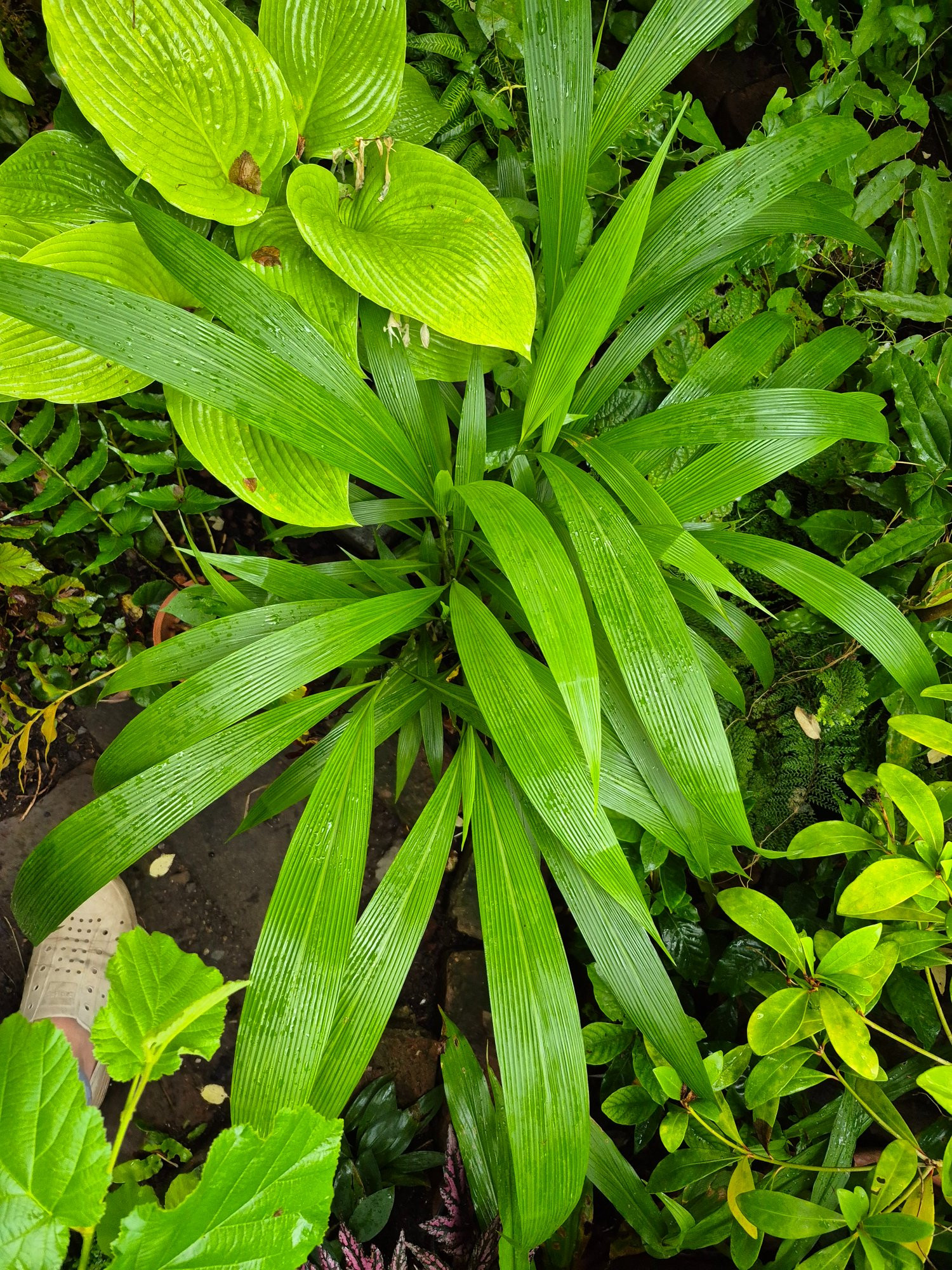 Chamaedorea microspadix, erste Outdoorüberwinterung ungeschützt im Topf erfolgreich. Leider sehr langsame Entwicklung. Gerade mal 2-3 neue Wedel pro Saison. Habe noch zwei radicalis hier, die noch etwas luxoriöser aussehen und dabei sogar noch robuster sind. Und sie bleiben so klein, dass sie selbst im Staudenbeet Platz finden, wenn denn noch Platz wäre