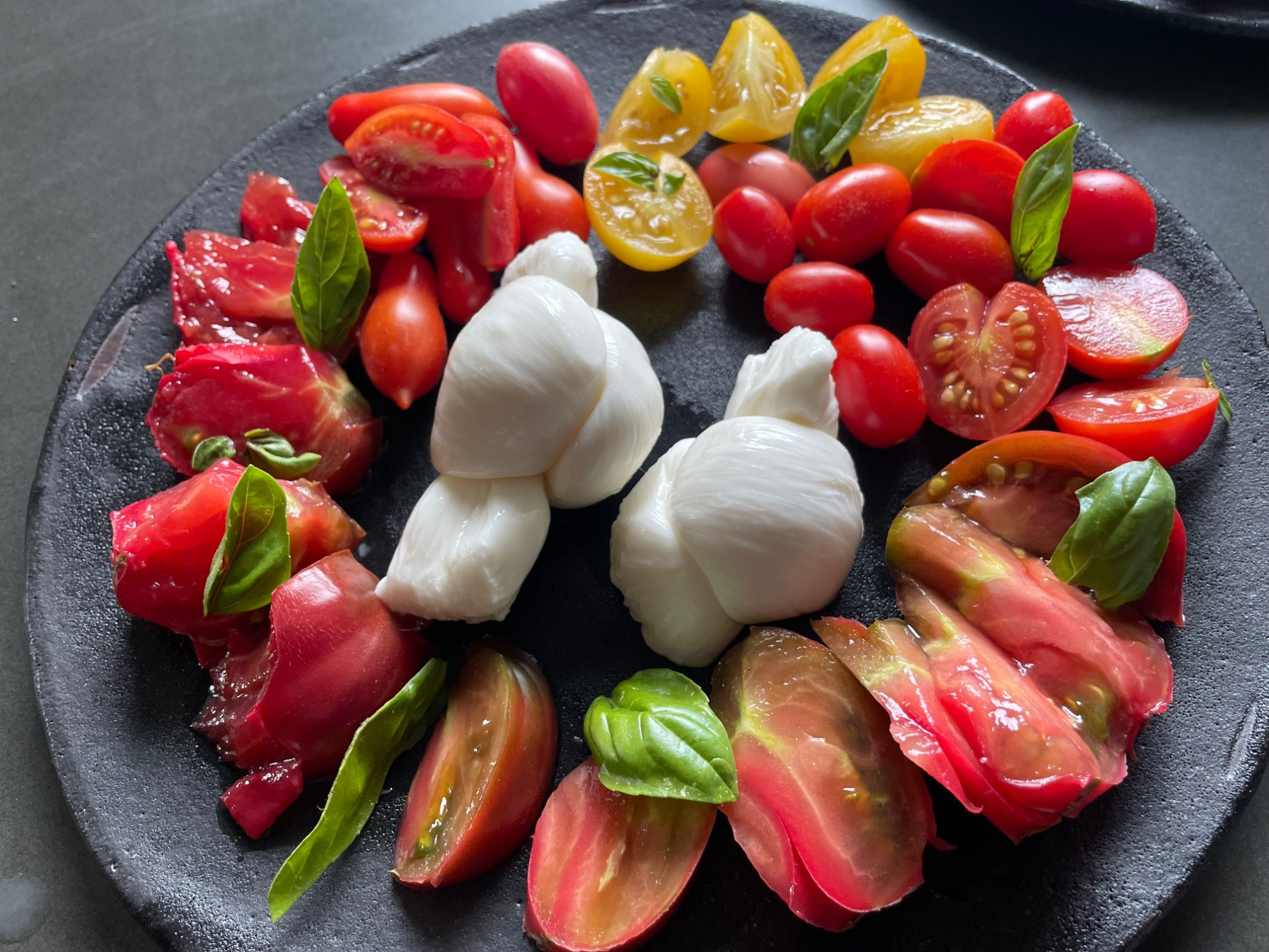 Mittags Currywurst und jetzt wieder Tomaten mit Mozzarella.