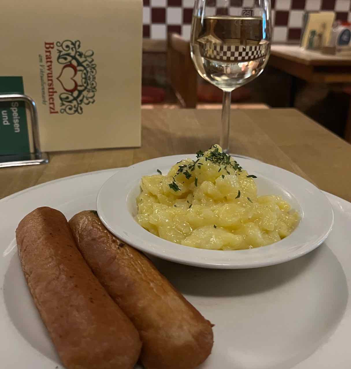 Heute in einem 350 Jahre alten Gewölbe: Wollwürste mit Kartoffelsalat und fränkischer Silvaner