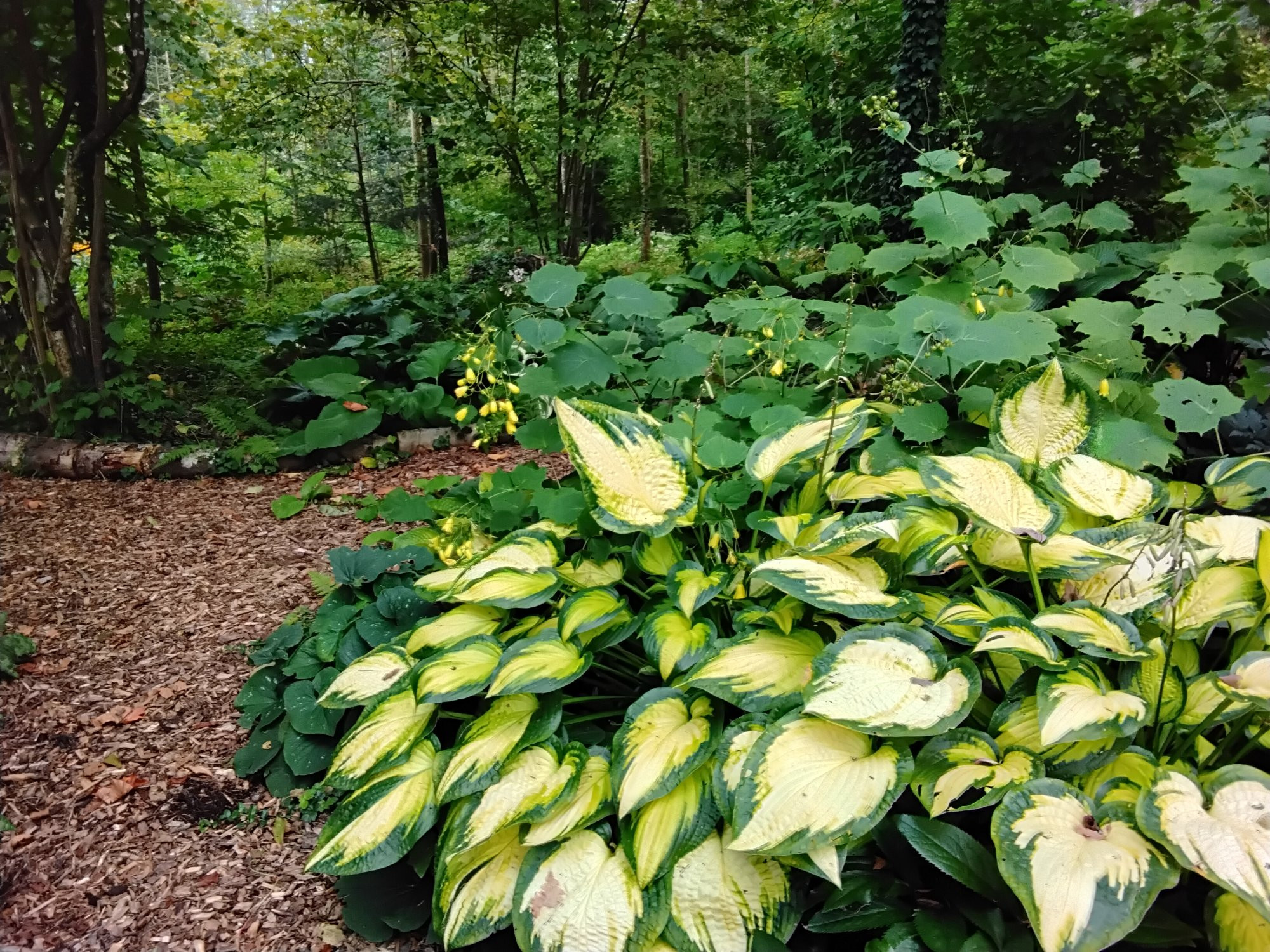 Das neue Farnbeet hab ich letzten Dezember mit Kartons abgedeckt und mit Bergen von Hackschnitzel meines gerodeter Waldes bedeckt, jetzt hab ich wieder eine grosse Fläche zum Gestalten.