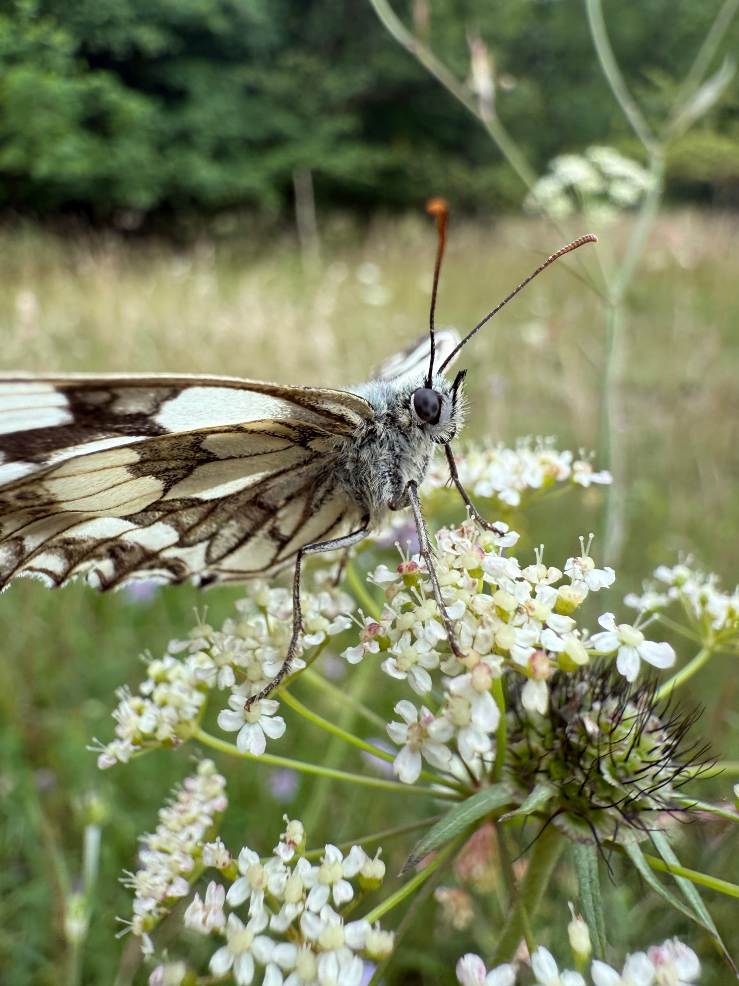 Ich denke, jetzt hab ich ihn gesehen, den Dunklen Wiesenknopf-Ameisenbläuling. War schwer zu erwischen mit dem Handy. Und hat sich beharrlich geweigert, mal die Flügel aufzuschlagen, außer beim fliegen. Es war aber auch nicht sonnig.