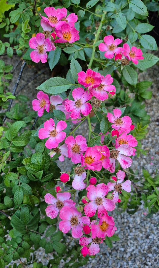 Die Rubiginosa-Hybride Herbstfeuer ist eher das Gegenteil. Sie hat aber trotz ihres robusten Wesens recht charmante Blüten und beginnt langsam mit der Nachblüte.