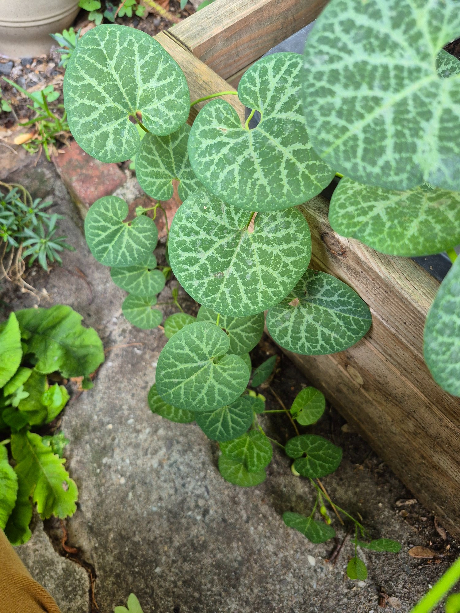 Aristolochia fimbriata. Angeblich eine tropische Art. Bisher gut winterhart und samt sich sogar reichlich aus. Wächst sehr gut aber zurückhaltend und wird daher nicht lästig. Habe die Pflanze auch schon seit Jahren.