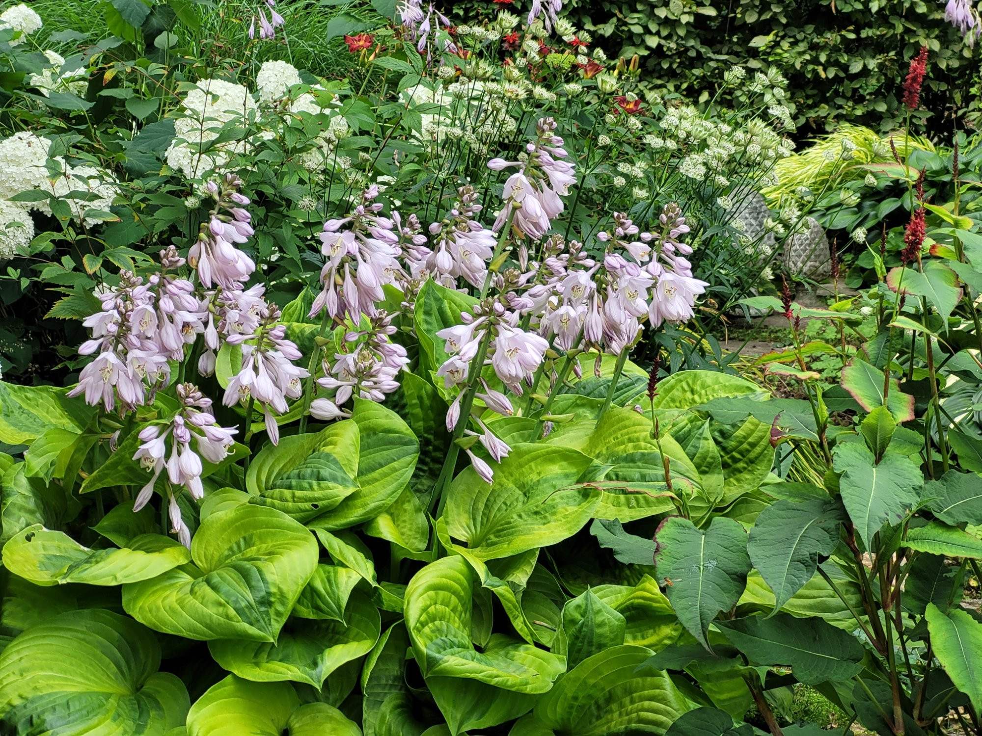 Nochmal Hosta... nun blühen 'Gypsy Rose' und - im Hintergrund zu sehen - auch 'Risky Business'.