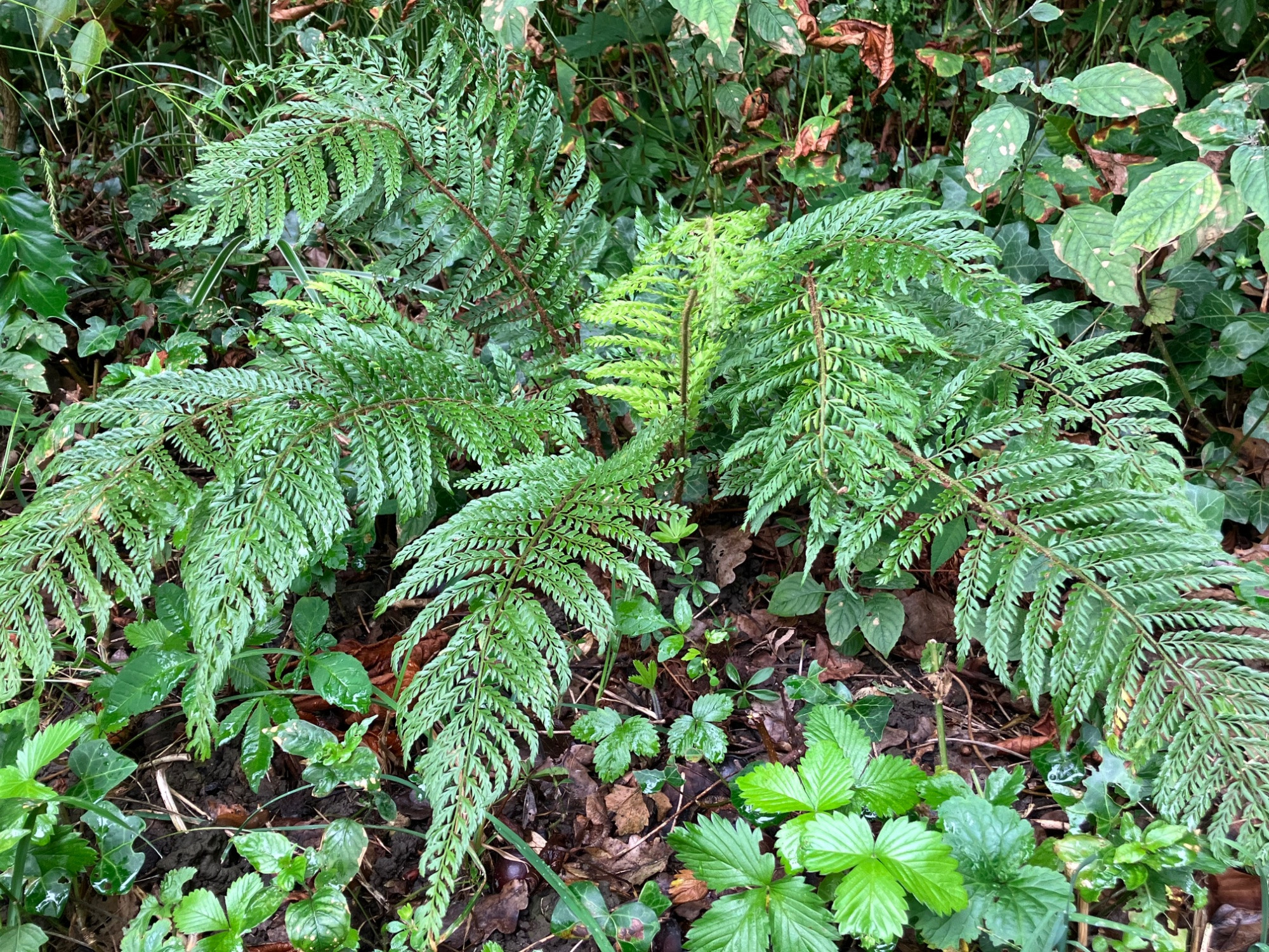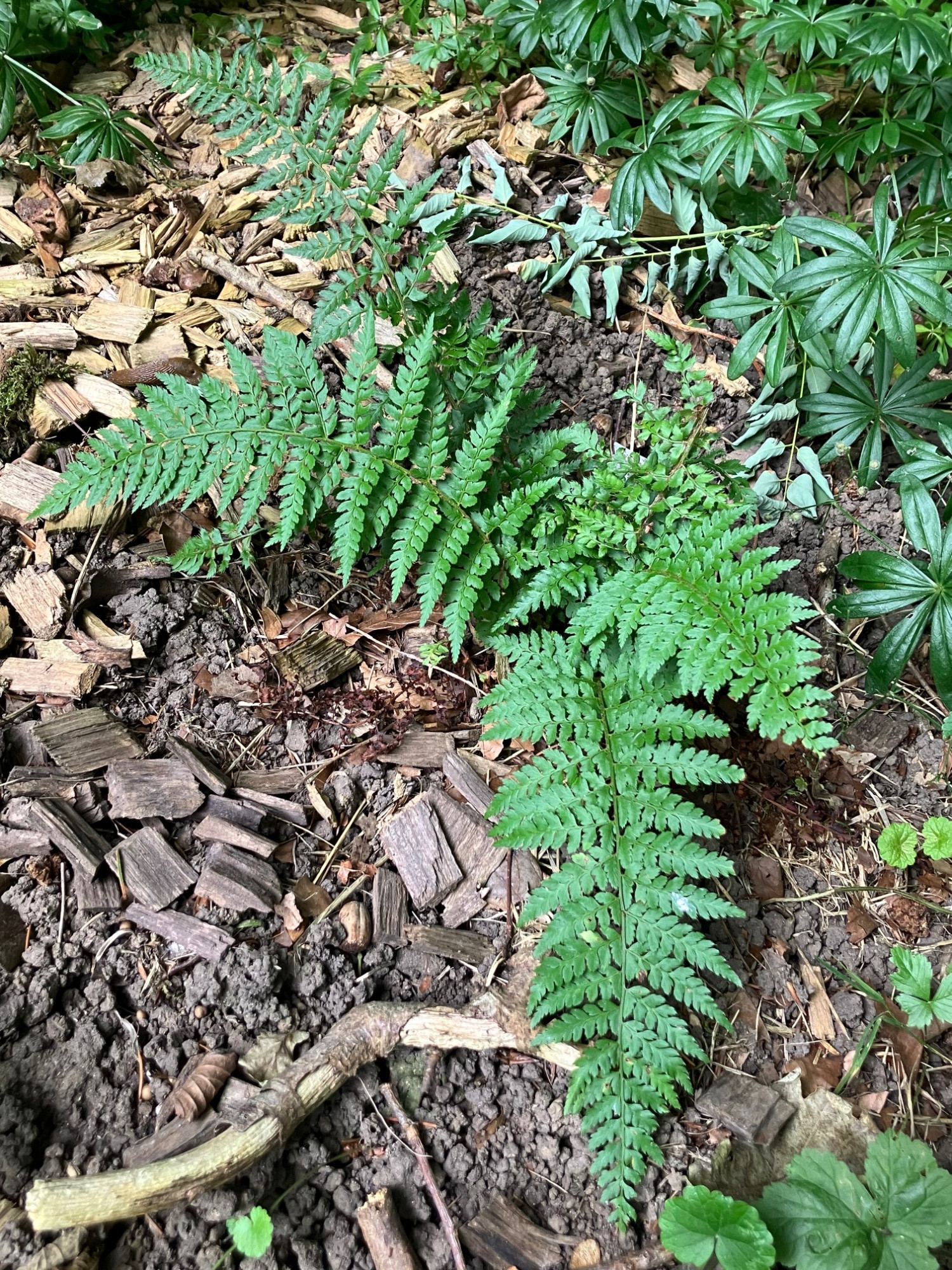 Polystichum setiferum gefällt mir am besten wenn man, falls mehrere Sprosse heranwachsen, sie einfach absticht.