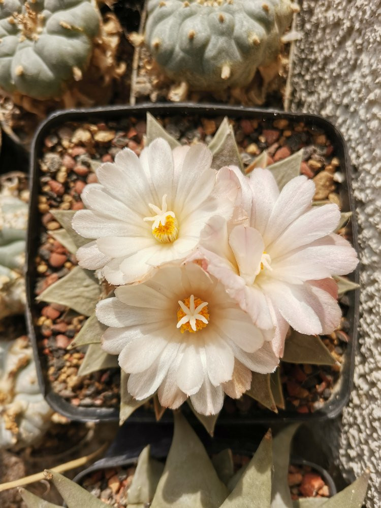 Diesem A. retusus hat das umtopfen wohl gut gefallen, 3 Blüten gleichzeitig hatte ich glaube ich noch nicht.