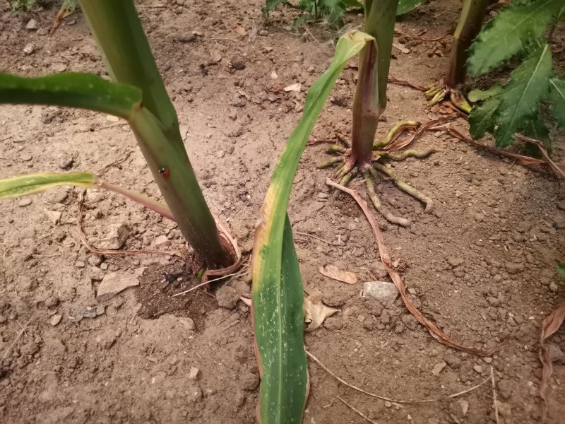 Und Mais hat auch keine Pfahlwurzel, leitet aber Wasser am Stamm entlang zur Basis.