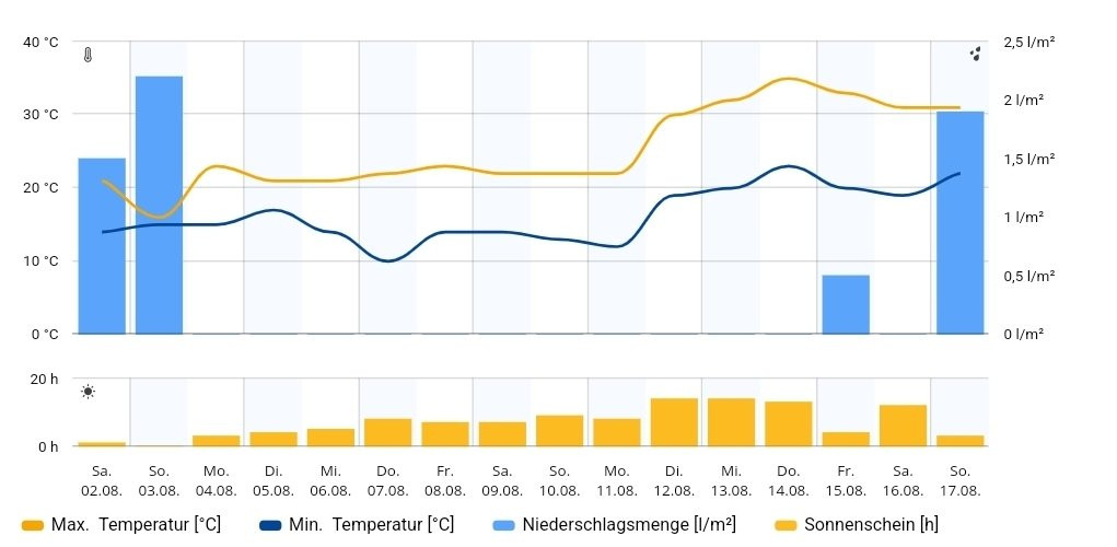 Hier 17°C und nach ein paar Stunden ohne Regen ging eben wieder ein Schauer nieder. Seit gestern morgen 17 mm, damit im August bisher 21 mm.